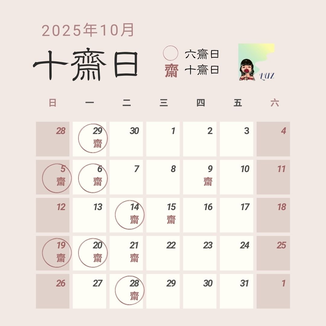 十齋日月曆2025.7 | 六齋日是什麼?