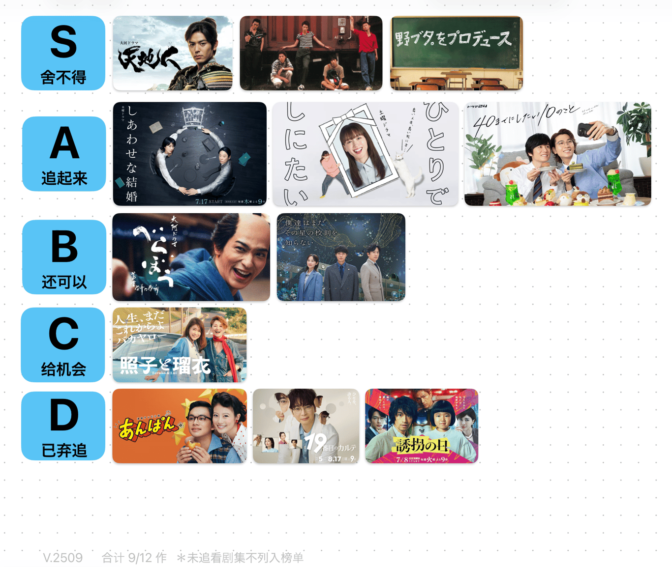 我的“日劇熱度榜”來到2025年9月版,夏季檔完結: