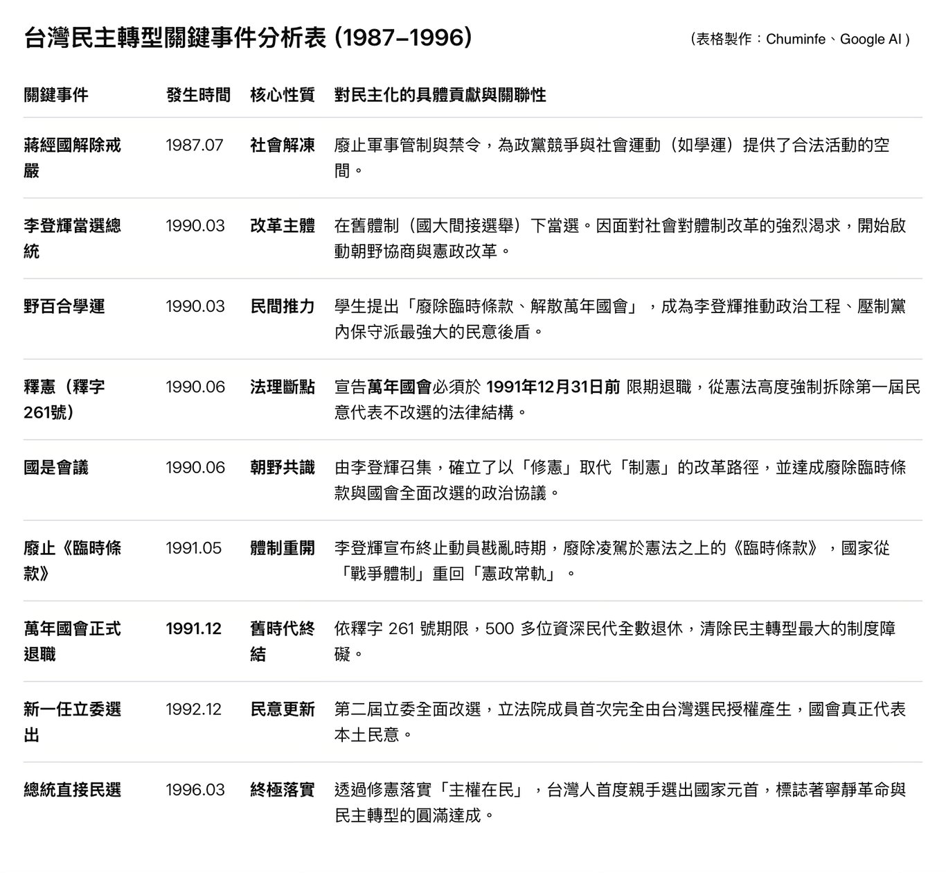 ⭐️ 附:台灣民主轉型關鍵事件進程: