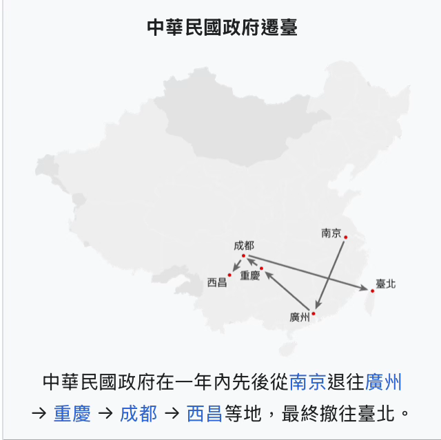 (二)蔣中正所領導的中華民國政府接連喪失領土、一路倉促撤離,最終敗走臺灣