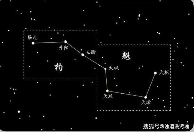 (北斗七星圖:搜狐網《我們常說的北斗七星,這七顆星分別叫什麼名字?您知道嗎?》 )
