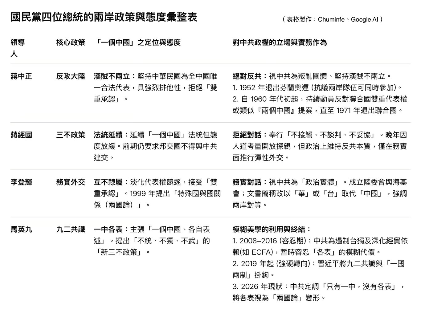 ⭐️ 註三:四位國民黨籍總統的兩岸政策與態度