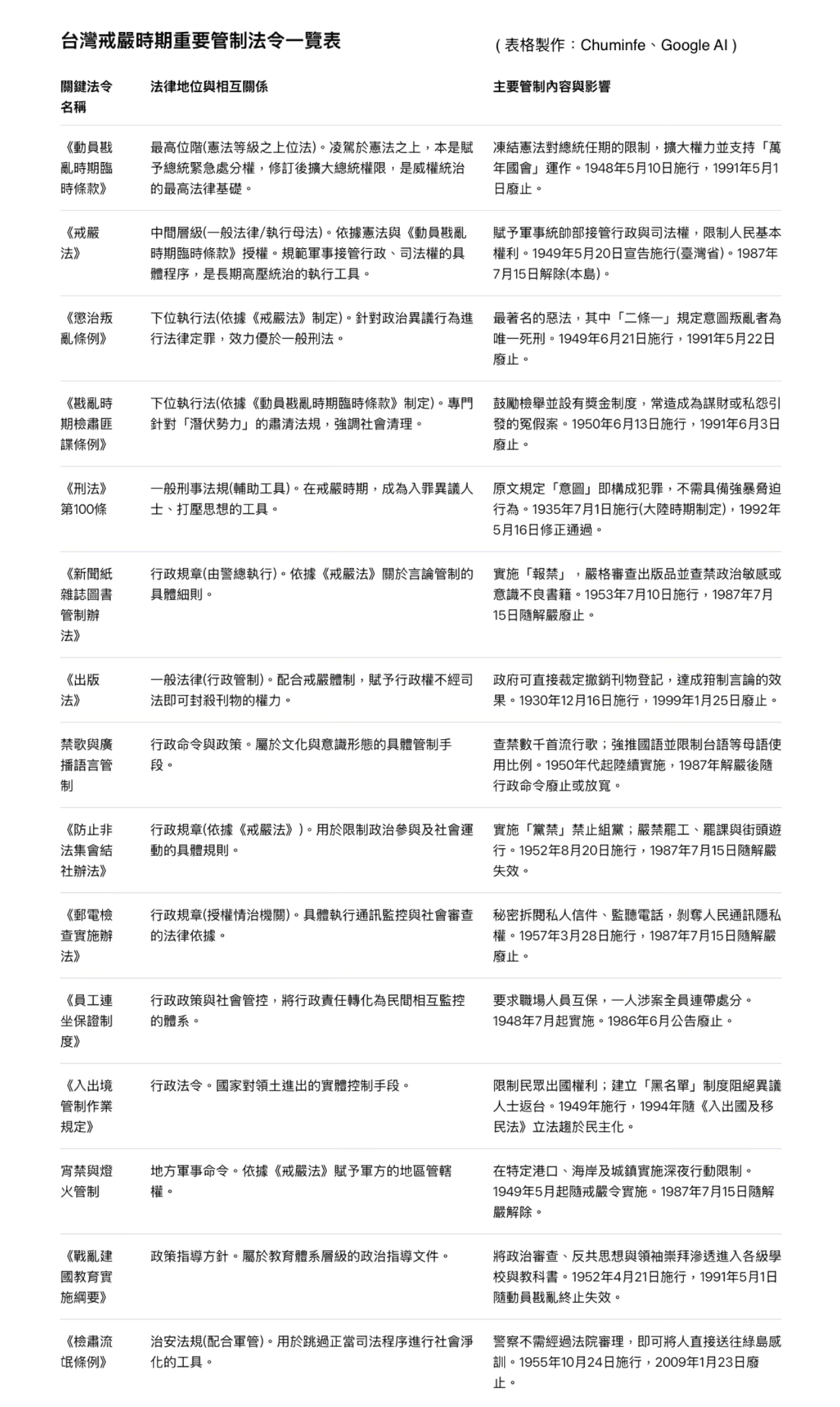 ⭐️ 註一:兩蔣與國民黨政府實施「使民畏之的嚴刑峻法」