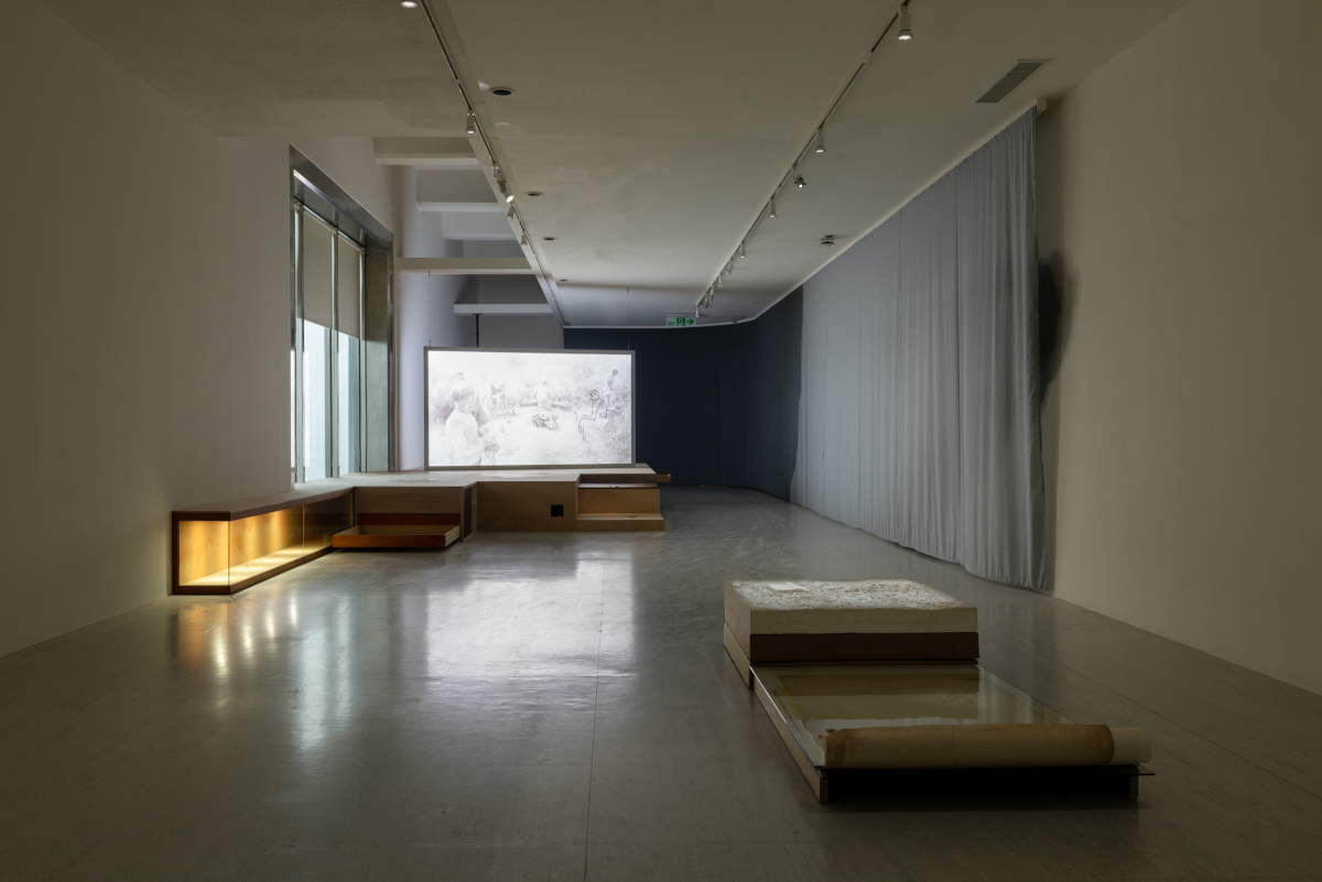 何彥諺的作品《私人旅行》,以細膩又帶性別銳利的美學,將北美館二樓展間「轉化為一個兼具考古挖掘現場與儲藏室氛圍」的場景,重構了考古學家瑪麗・伊莉莎白・舒特勒(Mary Elizabeth Shutler)在太平洋拉皮塔文化(Lapita culture)的挖掘記事。在展間裡,我們看到儲藏室的抽屜、隱隱若現的水漬、田野筆記,以及考古田野裡,生命與勞動緊緊黏在一起的親密狀態。