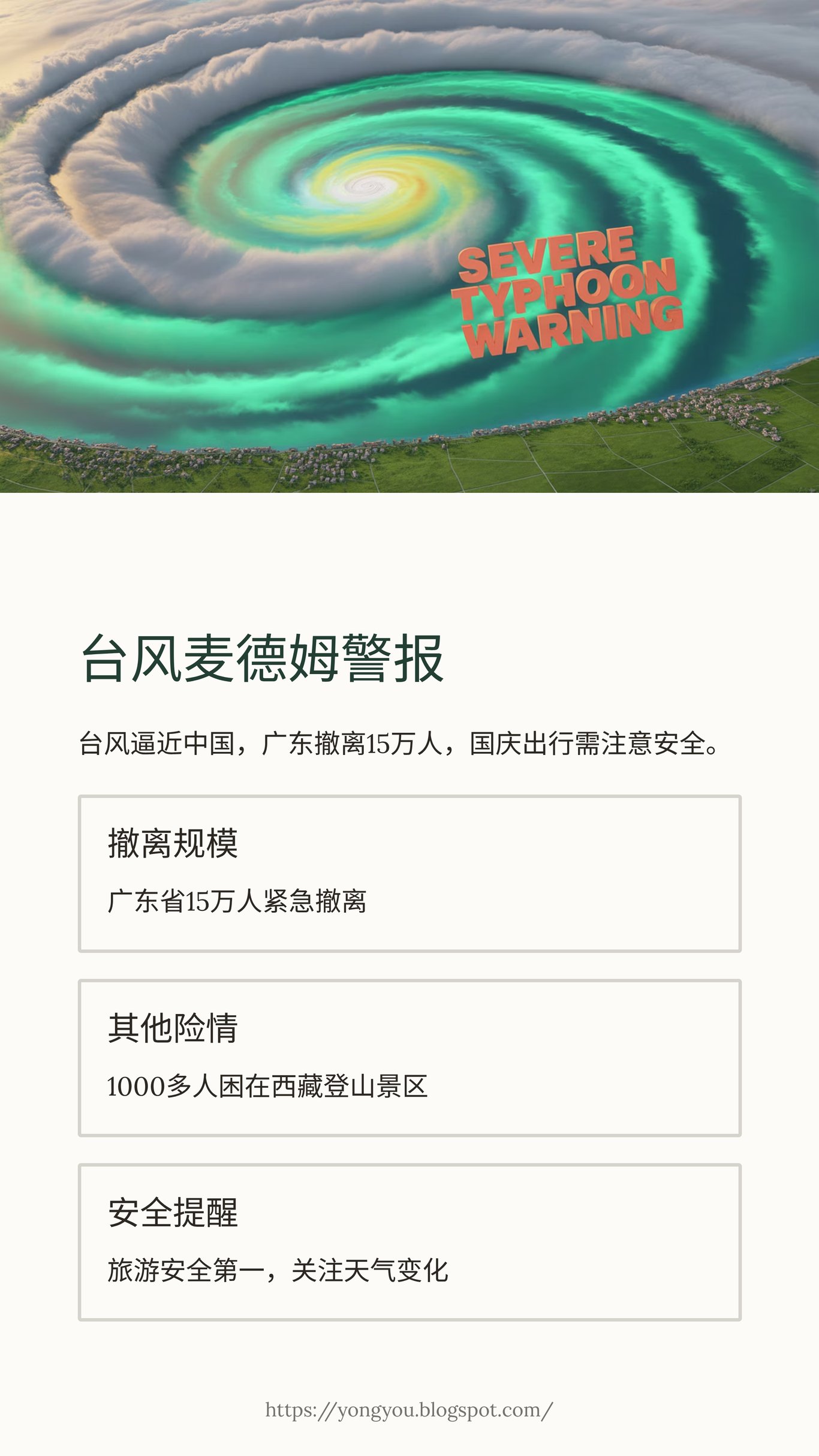 国庆假期的极端天气(台风、山区滞留)提醒公众:“幸福感”的前置条件是安全。对地方政府与旅游业者而言,灾害信息的透明、撤离预案的演练与景区承载力动态管理,才是“淡化事故叙事”的真正路径。