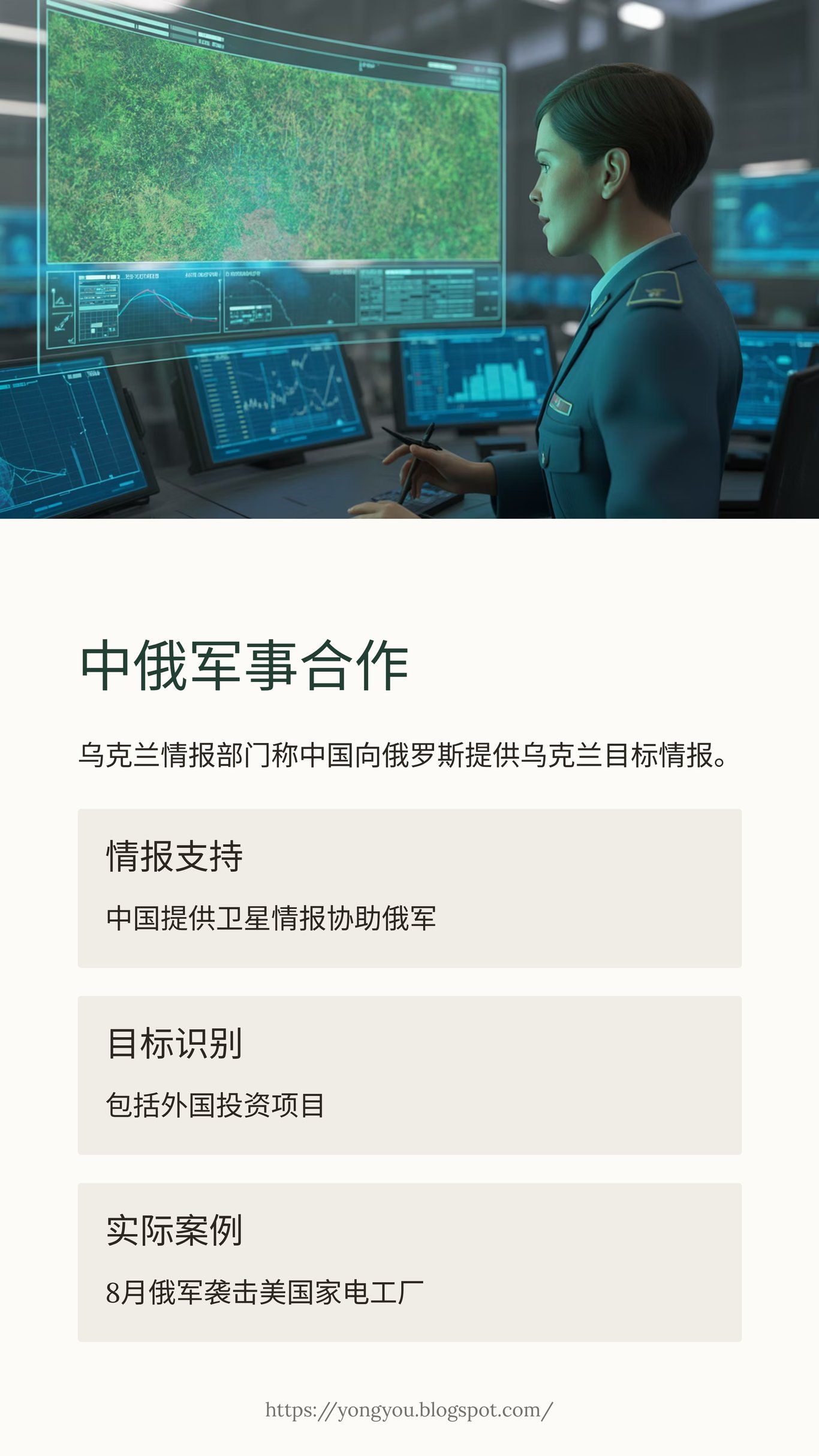 乌克兰对外情报局官员称,中国方向俄罗斯提供与乌境内目标相关的卫星情报,指向在导弹打击中的“目标选择升级”。该说法若持续被乌方公开强调,将在三个圈层产生外溢: