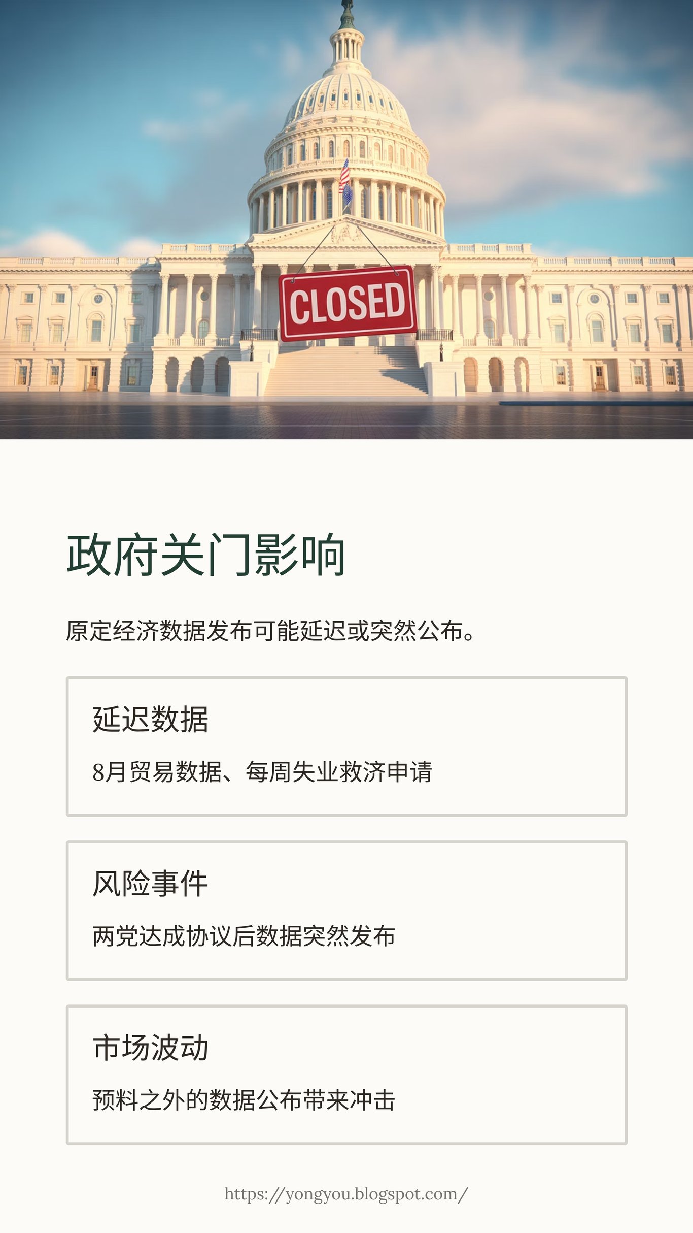 原定周二的8月贸易差额、周四的首次申领失业金人数,在关门僵局下或延迟。但一旦两党临时达成拨款协议,统计机构可能“补发”此前暂停的报表,甚至包括应在上周发布的9月非农报告。对市场而言,风险不在单一数据本身,而在于“信息流的骤然堆积”引发的再定价波动——这对短线交易尤为关键。