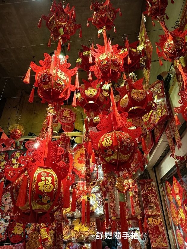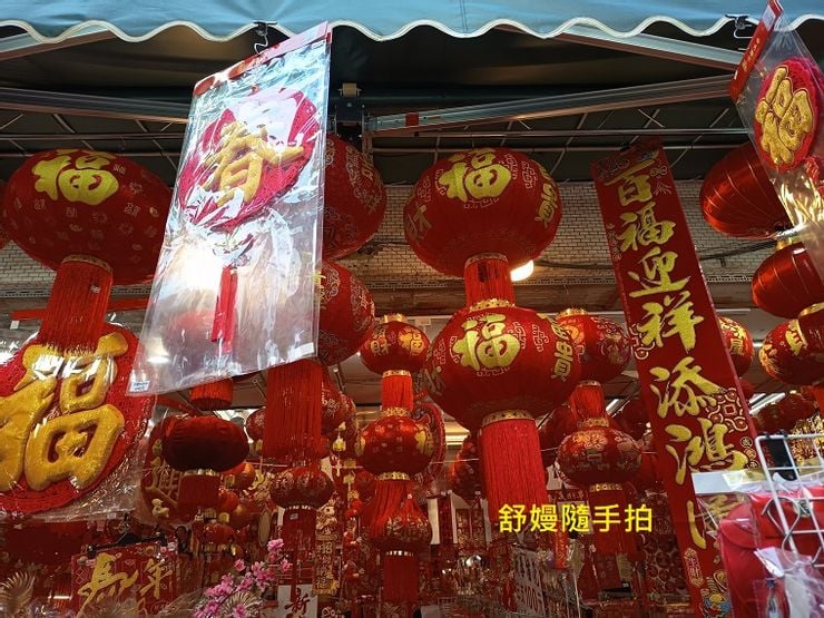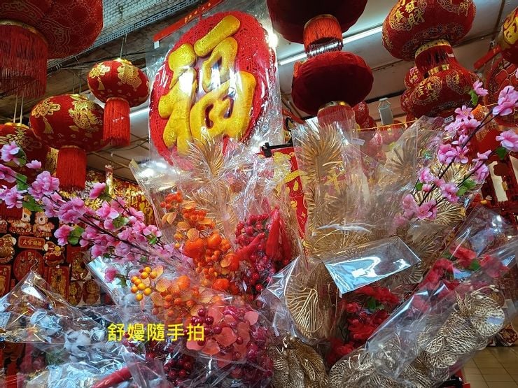 第一市場,多家販售新年掛飾專賣店,臨時擺攤更多。