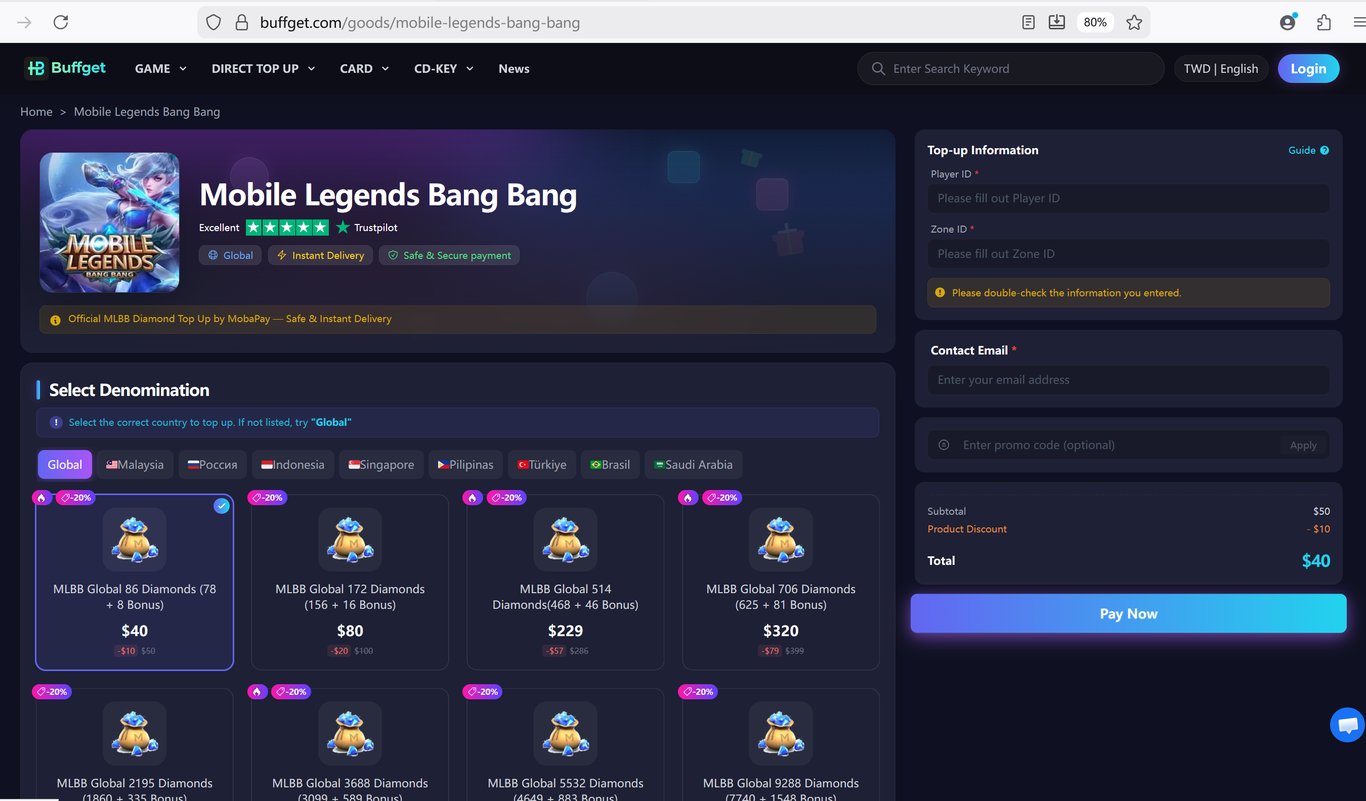 By using buffget, you can ensure that you are buying MLBB Diamonds at the most competitive rates available in February 2026. It is a safe, fast, and remarkably cheap Diamonds service that allows you to perform an instant MLBB top up via your Player ID. This ensures you can take full advantage of the daily 50% off draws and the guaranteed 10X rewards without overpaying for standard in-game rates.