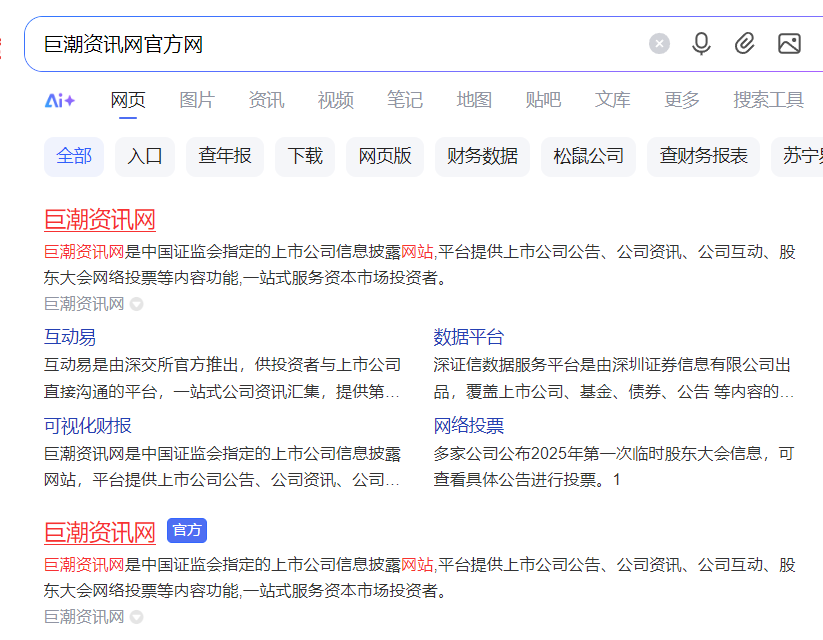 搜索“巨潮资讯网官方网”,认准正版,长这样。