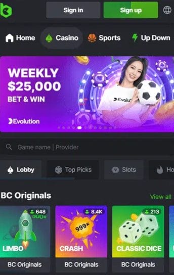 BC.Game是一家頂尖的比特幣娛樂場,提供即時提款服務,主要有兩個亮點。首先,平台上有超過10,000款遊戲,成為最佳比特幣老虎機網站之一。