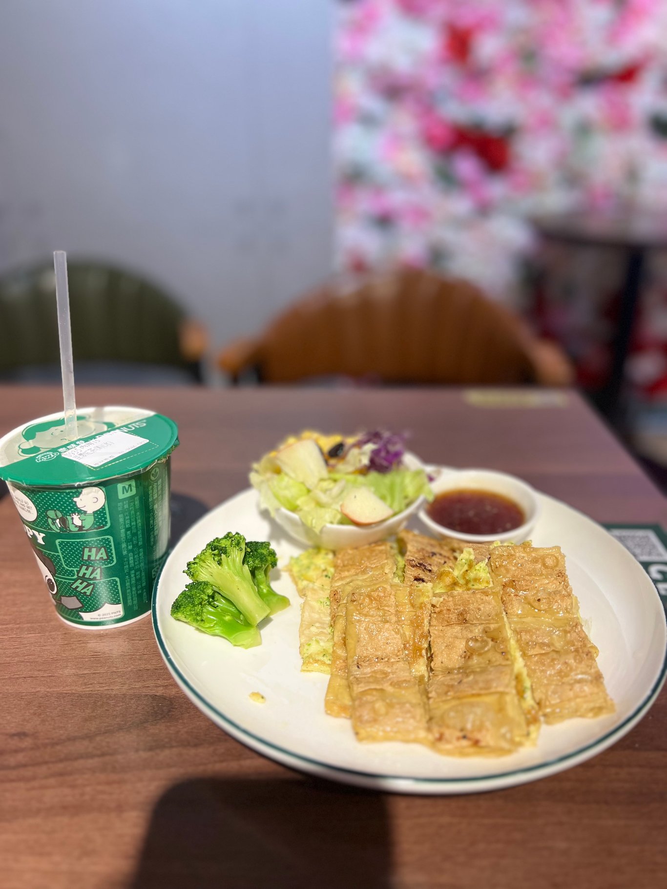 今天孩子去金孫爺家,老公也加班,於是我也能好好的與自己獨處,天氣很好,也剛好想去買點晚餐的食材,想著等老公下班後,可以一起看棒球吃晚餐。所以就以購物之名行散步之時,因為在購物場所的對面便是一個公園,走著走著才想到要先去吃個早餐,於是就想著前往麥味登,點我喜歡吃的時蔬豆皮蛋餅,來當我的早午餐:)