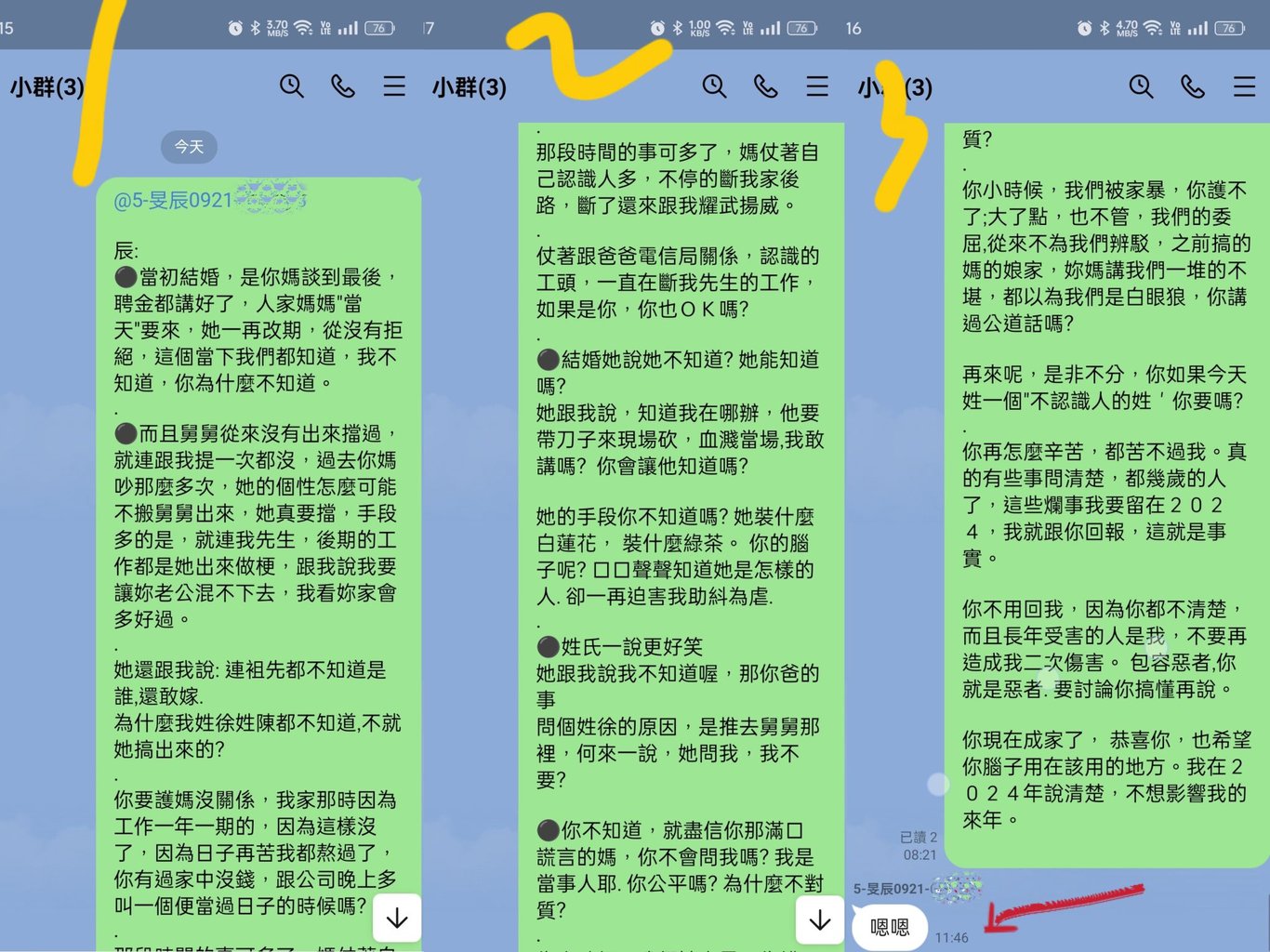 之前搞的媽的娘家,妳媽講我們一堆的不堪,都以為我們是白眼狼,你講過公道話嗎?