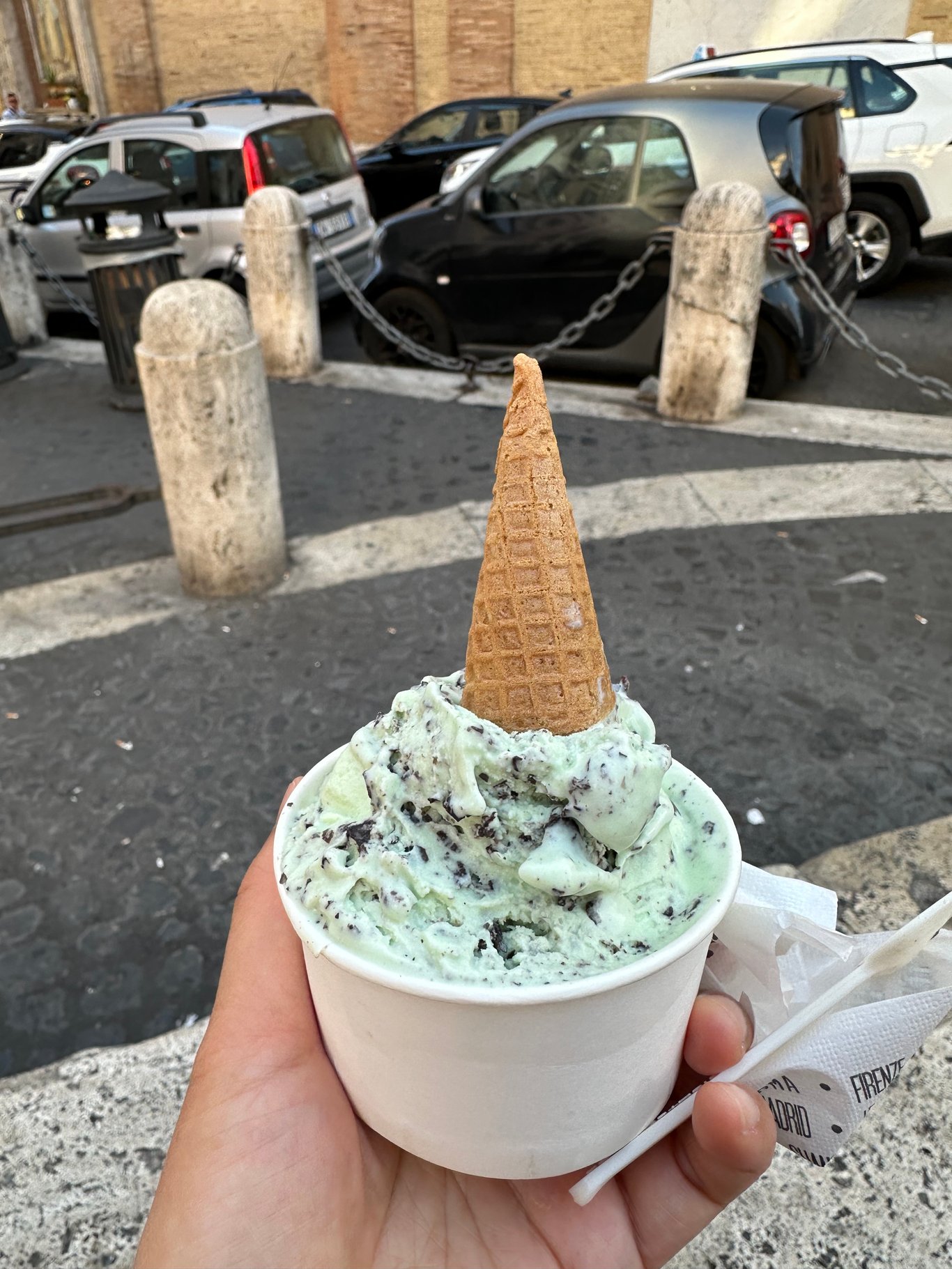 我们在罗马的第一天,在老城区暴走之后,就马上光顾路边的一家冰激凌店,美美滴享受了一大杯的冰激凌。 热量再高也管不住嘴巴,先吃了再说。