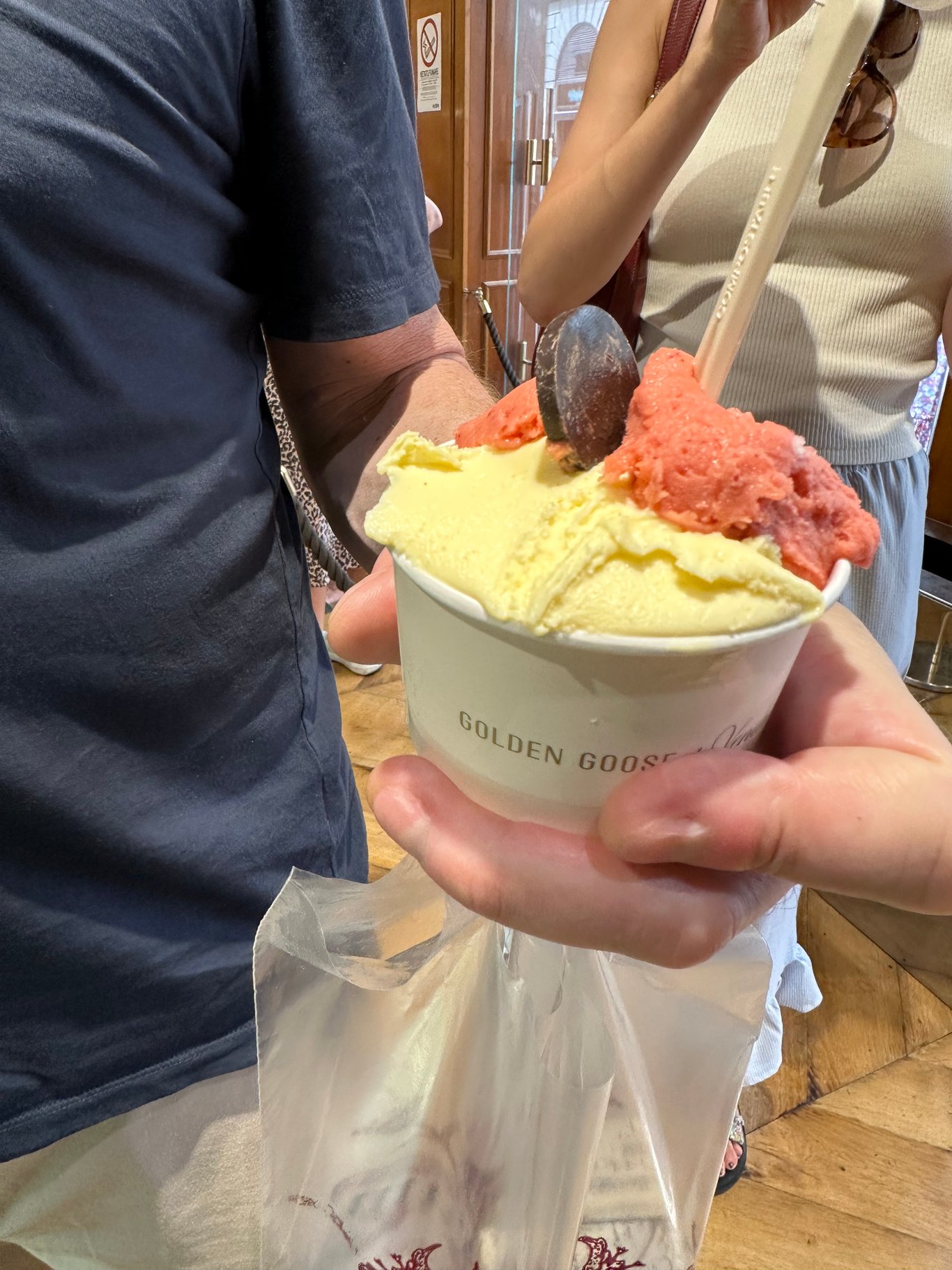 等我们到威尼斯,自然也少不了冰激凌。虽然我们是在9月初才去意大利,按理说温度相对来说会凉快一些。可是我们去的那周,除了佛罗伦萨两天下雨外,其余的天气都是艳阳高照,还是非常热的。冰激凌就成了一道犒赏我们每日暴走每日平均15,000步的辛苦吧。