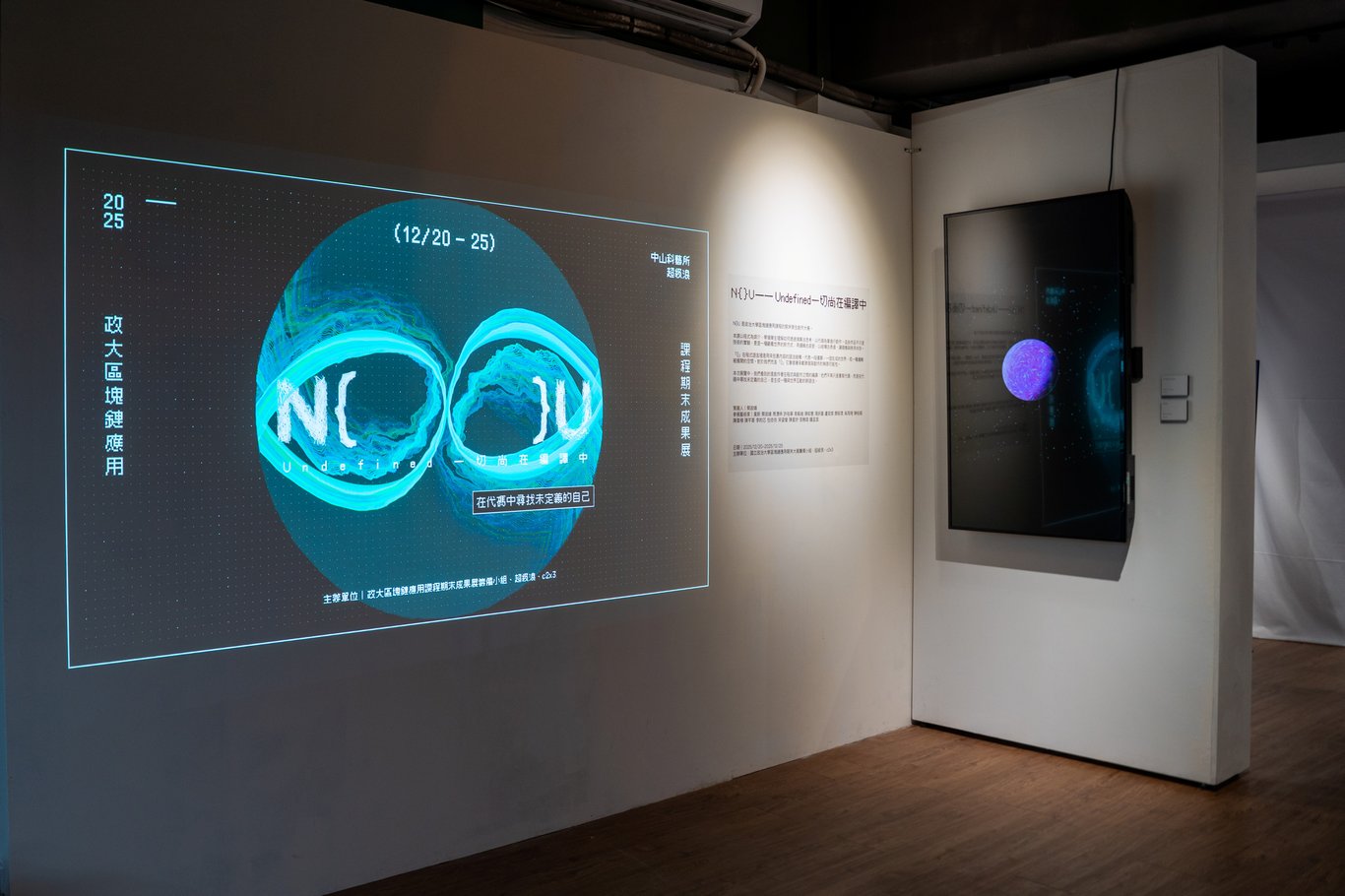 《N{}U──Undefined一切尚在編譯中》此檔展覽以黃新的「區塊鏈應用」課程為基礎,與超級浪、c2x3合辦。課程以「程式」為媒介,帶領學生理解如何透過演算法思考、以代碼為筆進行創作。這些作品不只是技術的實驗,更是一種觀看世界的新方式:用邏輯去感受、以結構去表達、讓隨機與秩序共存。