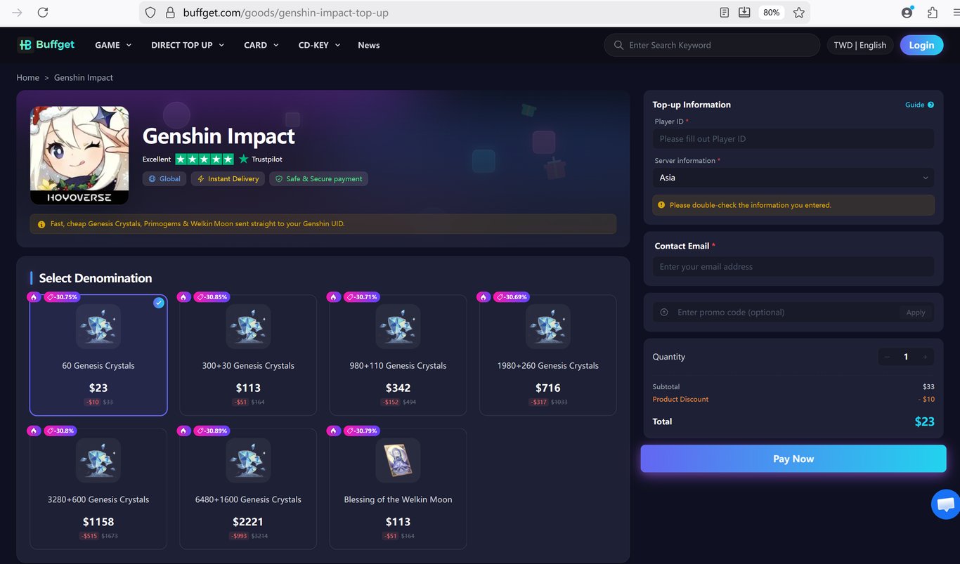 I highly recommend you take a moment to Google search for "buffget". It is a platform that the high-tier community—the theory-crafters and the whales—uses to maintain their accounts. By using buffget, you can discover options to buy Genshin Impact Genesis Crystals that are significantly cheaper than the standard rates.