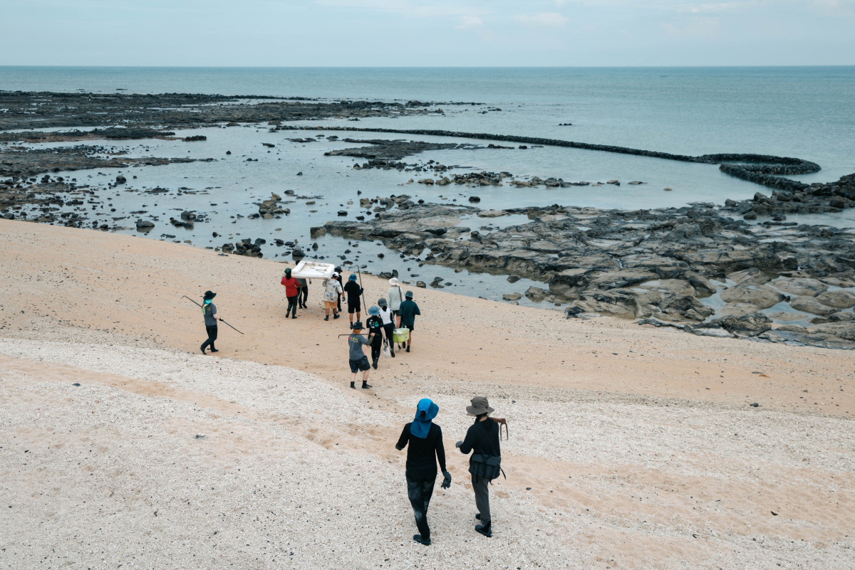 起初,我也很懷疑世上還有誰和我一樣想做這件事,但偶爾我會收到來信、或參與走讀的人詢問:「是否能在走讀以外,以付出勞動的方式來認識石滬?」所以去年起,我將修復方式轉換成擴大民眾參與的志工模式,先將早期師父修復的技術概念、他們腦中的語言,透過觀察後轉化成系統化教學的制度,開始辦理「石滬傳習生」。