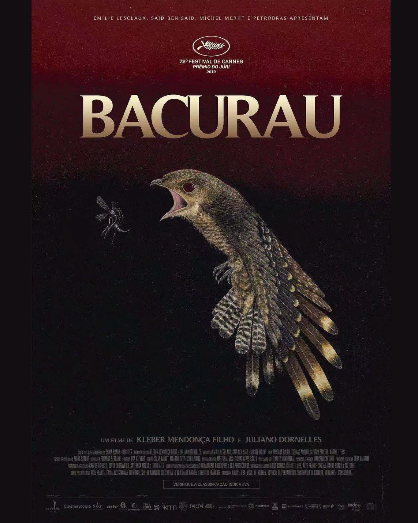 巴西電影《殺戮荒村》(Bacurau),葡萄牙語片名 𝐁𝐚𝐜𝐮𝐫𝐚𝐮,原意為巴庫勞、末班車、夜行鳥,是一種已絕跡多時,唯獨在小村中還能發現的大型鳥,具備強烈的在地性,牠擅長在樹梢上偽裝,與大自然融為一體,但這也意謂著這座小村其實是絕無僅有的存在,要好好保護避免消失的國寶村落,偏偏有機新政客為了奪取私人名利權力,企圖滅村!