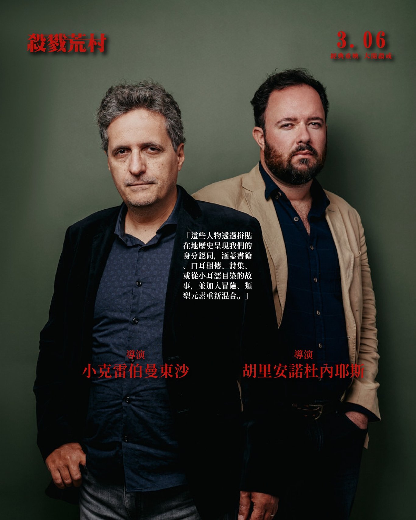 將於2026年3月6日在台上映的巴西電影《殺戮荒村》(Bacurau),由導演小克雷伯.曼東沙 (Kleber Mendonça Filho)與長期合作的美術指導胡里安諾.杜內耶斯(Juliano Dornelles)首度共同執導的電影,雙導演透過一個發生偏僻小鎮的血腥殺戮與居民為生存大反撲的故事,娓娓道來政客居心叵測的惡毒算計與小人物如何團結一致,從爭生存權與言論自由到在地歷史身分認同,全片劇情發展,從迷霧滿天令人費解,到最後撥雲見日找到幕後黑手,觀影過程有如倒吃甘蔗,觀眾要保持耐心才能在結尾感受到雙導演的深刻寓意!