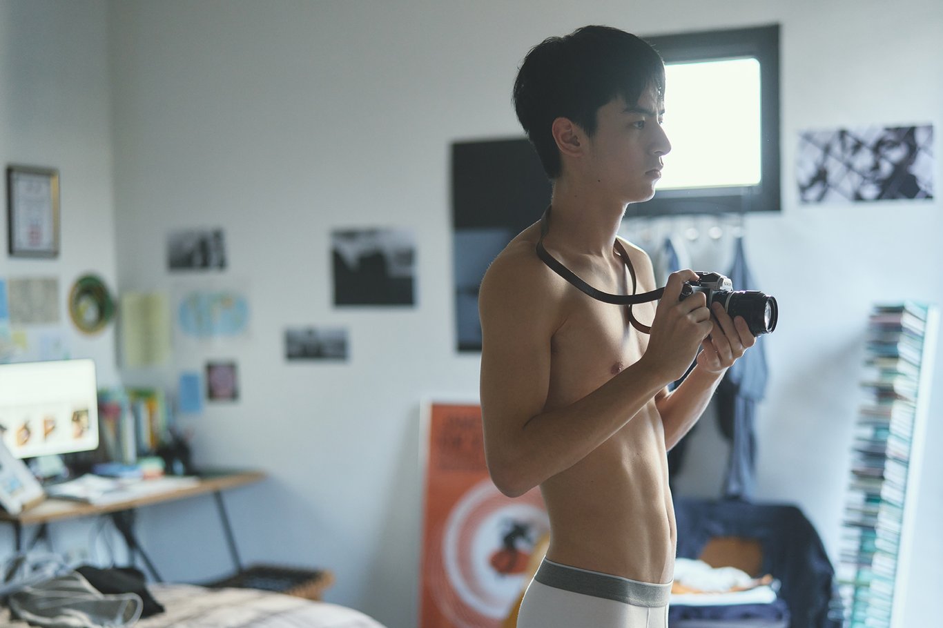 回過頭來,這部電影的場景、攝影,也都帶著看著觀景窗時的安靜:畫面一分為二的書儀與義峰的兩個世界,兩個人從開燈到關燈的獨留書儀一人剩下唯一那盞燈;天瀚站在鏡前剩下內褲從觀景窗看見鏡中的自己,讓我想起《一一》拿著相機對著世界拍照的洋洋⋯⋯故事從天睿拿著媽媽的手機拍下的畫面,成為最後的爆破點。
