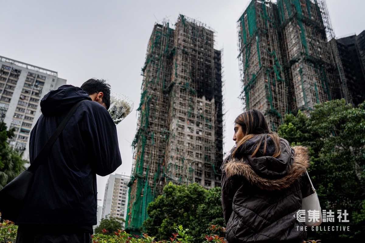 澳門人崔先生本來約好朋友在九龍,因為是大火後首次到香港,而有大學同學的表哥在火災中喪生,亦剛好知道正是大火發生一個月,便提早過關前來悼念。他指心情沉重直指這場是人禍,認為有很明顯證據證明人為疏忽和監管問題,留意到居民在出事前一年已經不斷反映,「講咗好大問題,冇人理,一直說安全。」他又指官員一開始將大火歸因竹棚,後來又改口是沒有關係,「我唔 care 你嘅立場係咩,我淨係 care 呢件事喺度解決,而唔係推卸責任。」