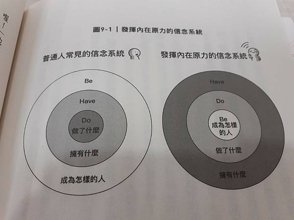 不是先想要擁有什麼(Have),並且以此前提去行動,最後把自己塑造成怎麼樣的人(Be)。而是先想像自己想要成怎麼樣的人(Be),以此為原則實際上做了什麼(Do),最後造就自己擁有什麼(Have),先想自己想要成為怎麼樣的人,而不只是做出什麼事(連結)。