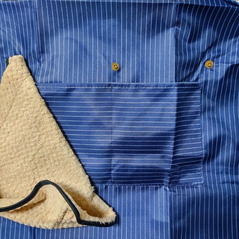 圍裙表層是防水布,裡面有做親膚層,所以穿起來不會不舒服,雖然防水做下去會有點不透氣,但這是圍裙啊,只圍前面所以還好。