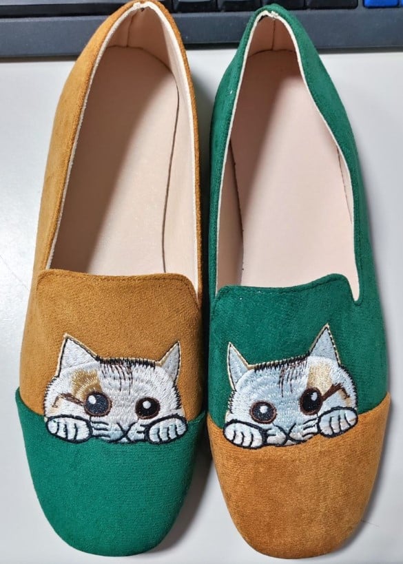 穿上感覺舒適,走起來也OK,一雙279元,是值得的,光是腳面上有一對貓咪會探出頭看你這點,我就覺得值!