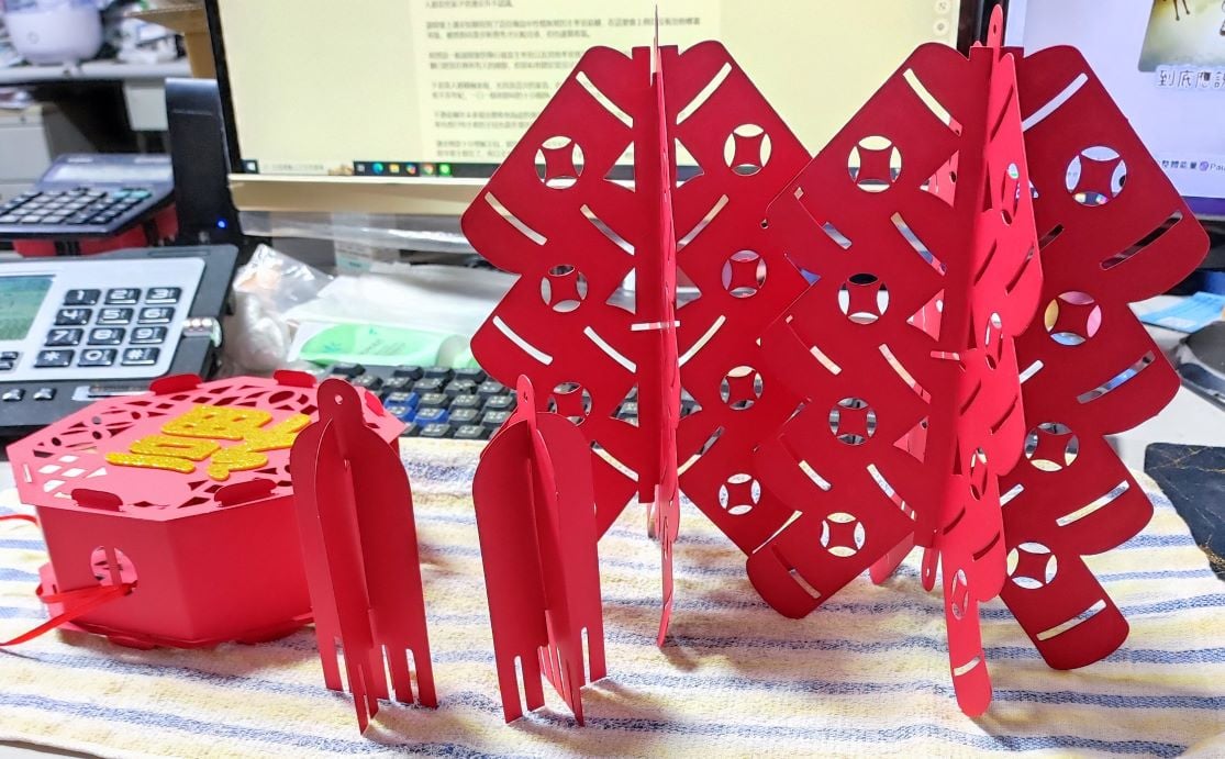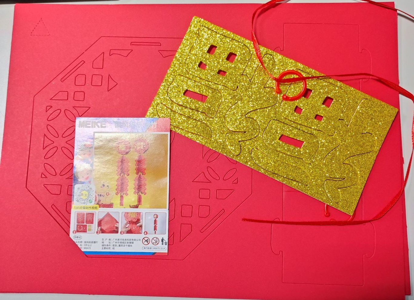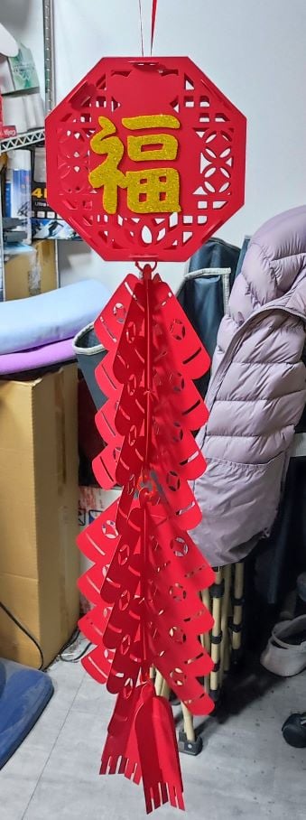 完成後掛起來非常喜慶,做法也簡單,時間也不用花很多,非常推薦大家可以買來自己動手,記得也不貴,畢竟.....就是五歲以上可獨立完成的作品....,貴也貴不到哪去的....。