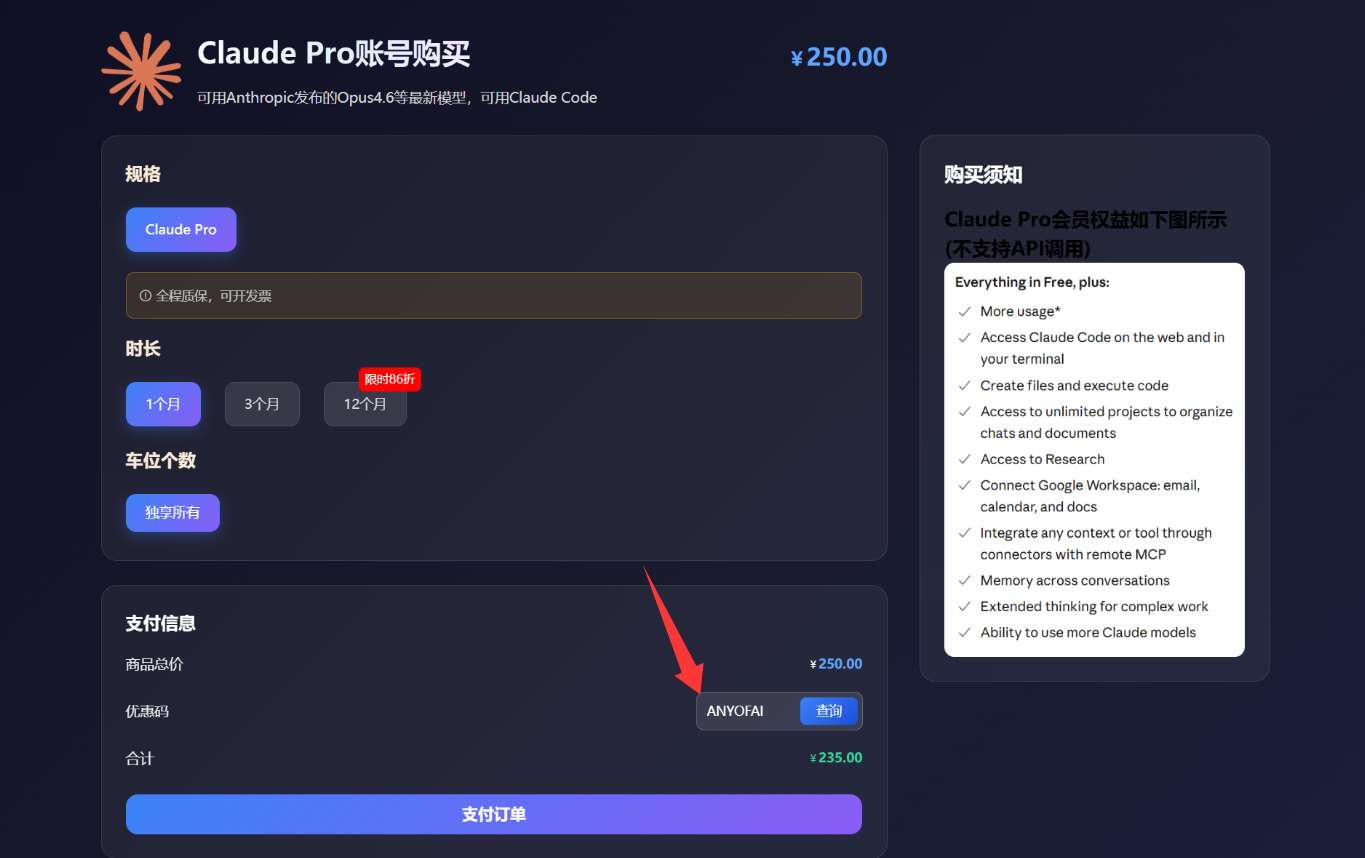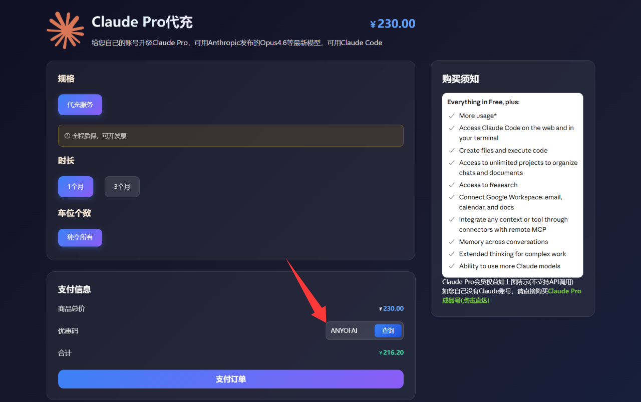 方法一:Claude Pro代充值(适合老用户,简单省事)