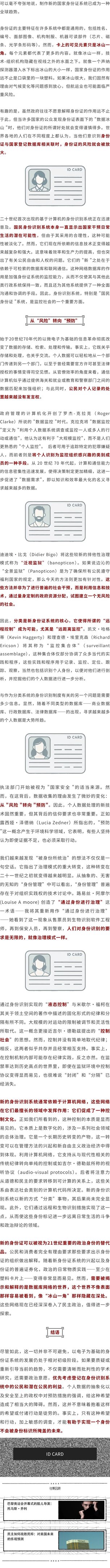 识别与监控:新兴的身份证系统地鸣Rumbling·2024 年 8 月 22 日·IPFS·翻译成简中原文链接:https://mp.weixin.qq.com/s/gqWvz0RxLMEv21DQSUOYlg 監控网证网号地鸣CC BY-NC-ND 4.0 授权建议频道选择希望推荐到的频道(单选)生活事书音影旅・居性别/爱创作・小说时事・趋势身心灵没有适合的频道不参与频道推荐 (文章将出现在「还有」中)下一步喜欢我的作品吗?别忘了给予支持与赞赏,让我知道在创作的路上有你陪伴,一起延续这份热忱!支持作者支持作者5地鸣Rumbling事件洞察,理论批评,进步之声 (微信搜索:地鸣Rumbling关注)来自作者相关推荐为“白左”辩护:制造敌人、群体癔症与男性支配打破束缚:安娜其主义对话残障正义佛朗哥的水梦:西班牙的水利建设55