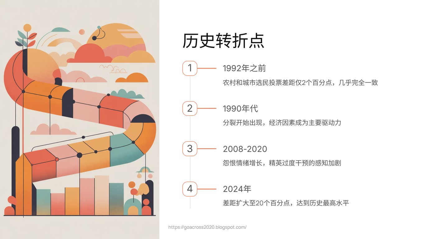 然而,从90年代中期开始,这座桥梁开始出现裂缝。那曾经微小的投票差距,如同一道被强行撕开的口子,逐年扩大。到了2024年,它已经变成一道鸿沟——一个高达20个百分点的惊人差距。曾经的政治同盟,彻底瓦解。要理解这背后的逻辑,我们首先需要明白,断裂的起因并非我们通常想象的文化战争或种族议题,而是更为原始和切肤的痛感。