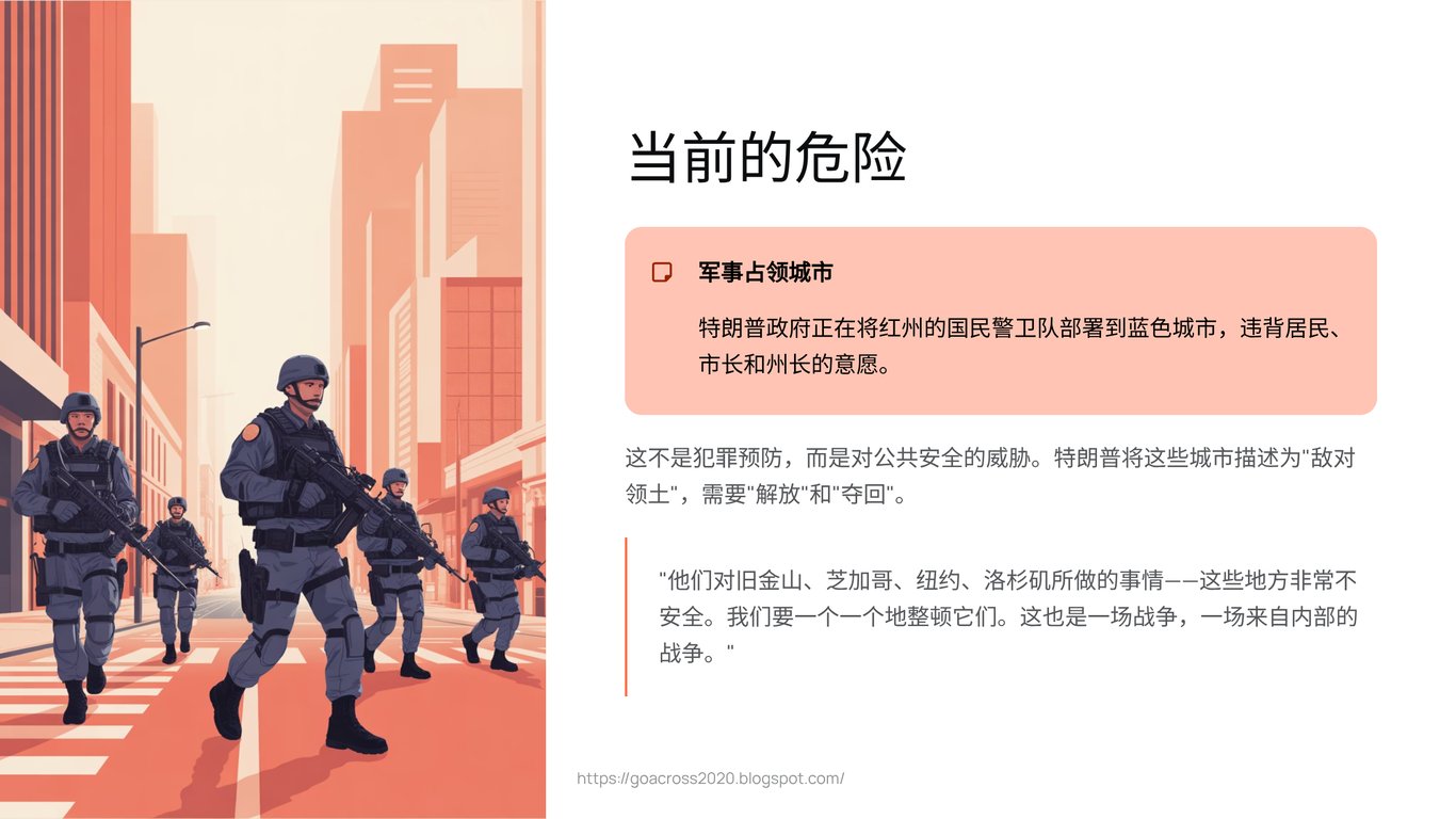 让我们从一个令人不寒而栗的场景开始。一个国家的最高领导人,将自己国家的主要城市——那些经济与文化的中心——描述为需要被“夺回”和“解放”的“敌方领土”。他声称,派遣武装部队进入这些城市,凌驾于市长甚至州长的反对之上,是为了“整顿”它们。他甚至暗示,这些地方可以作为军队的“训练场”。