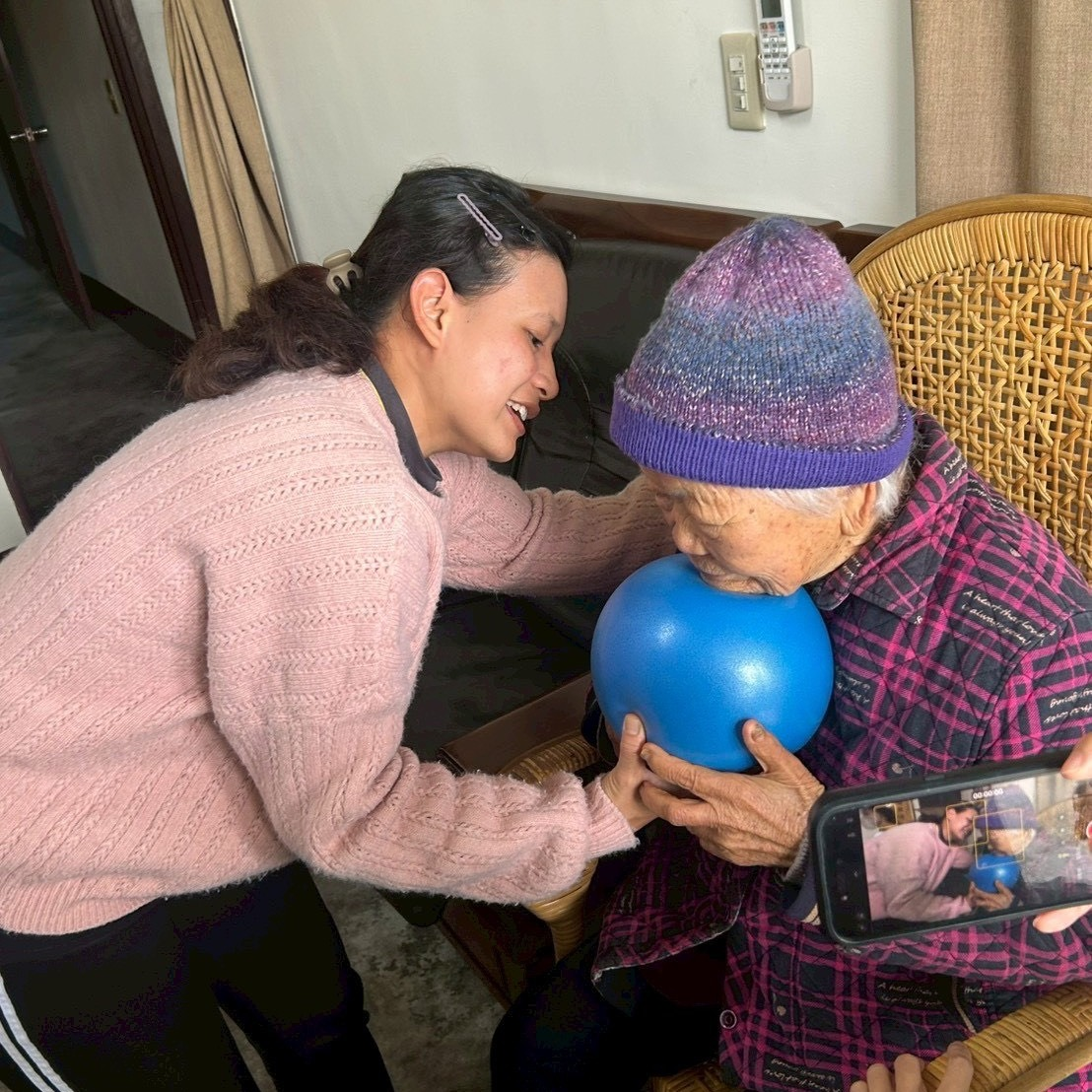 #另一位98歲的阿嬤,則會在女兒與看護的用心安排下,使用我們鎮公所發放的敬老運動用品。當我造訪時,彈力球、彈力帶就放在旁邊,現場還示範給我們看,動作看起來很熟練,顯然是真的天天都有做。家人說,這樣的訓練,真的改善了她的身體狀況。那一刻我很欣慰,也更堅定了持續推動多元敬老政策的決心:一個好政策,是可以走進生活,可以改變民眾日常的小事。