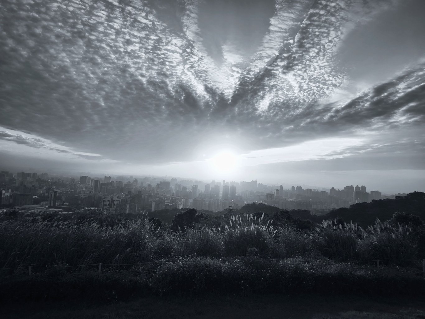 烏雲下的光和影交錯著,