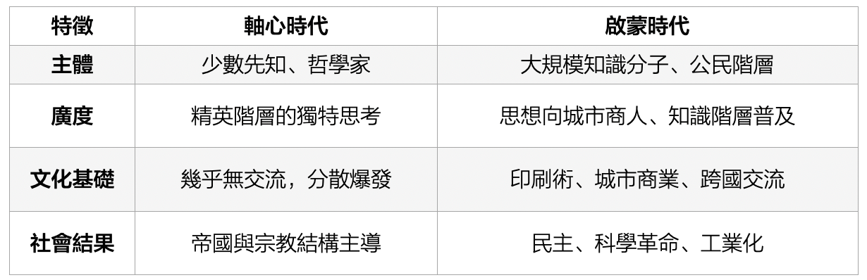軸心時代 vs. 啟蒙時代:兩種不同的思想革命