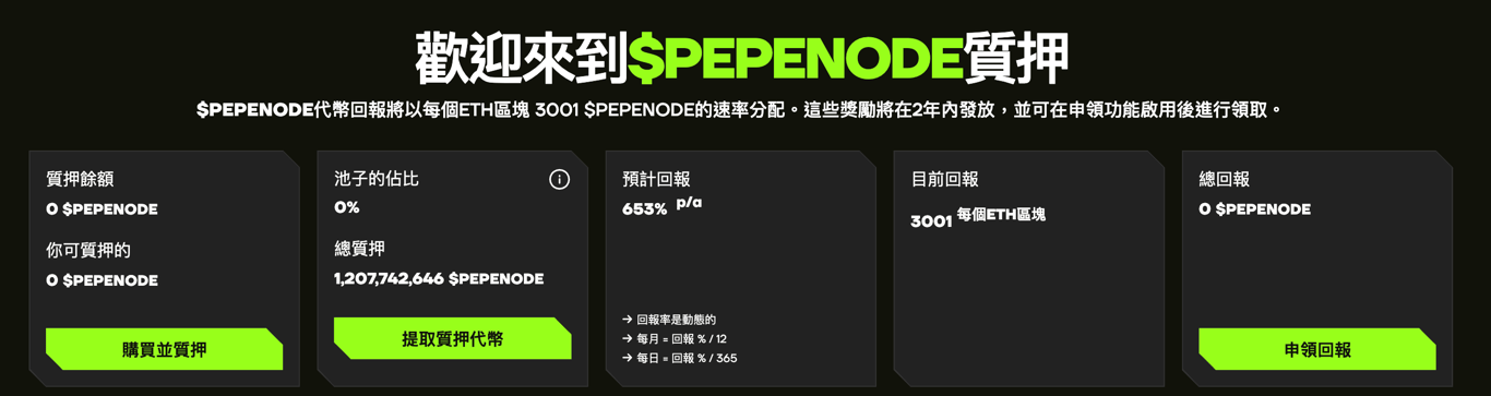 這一早期實用性來自PepeNode的質押協議,為參與者提供動態年化報酬率高達653%的收益,讓等待的時間也能成為增值的過程。