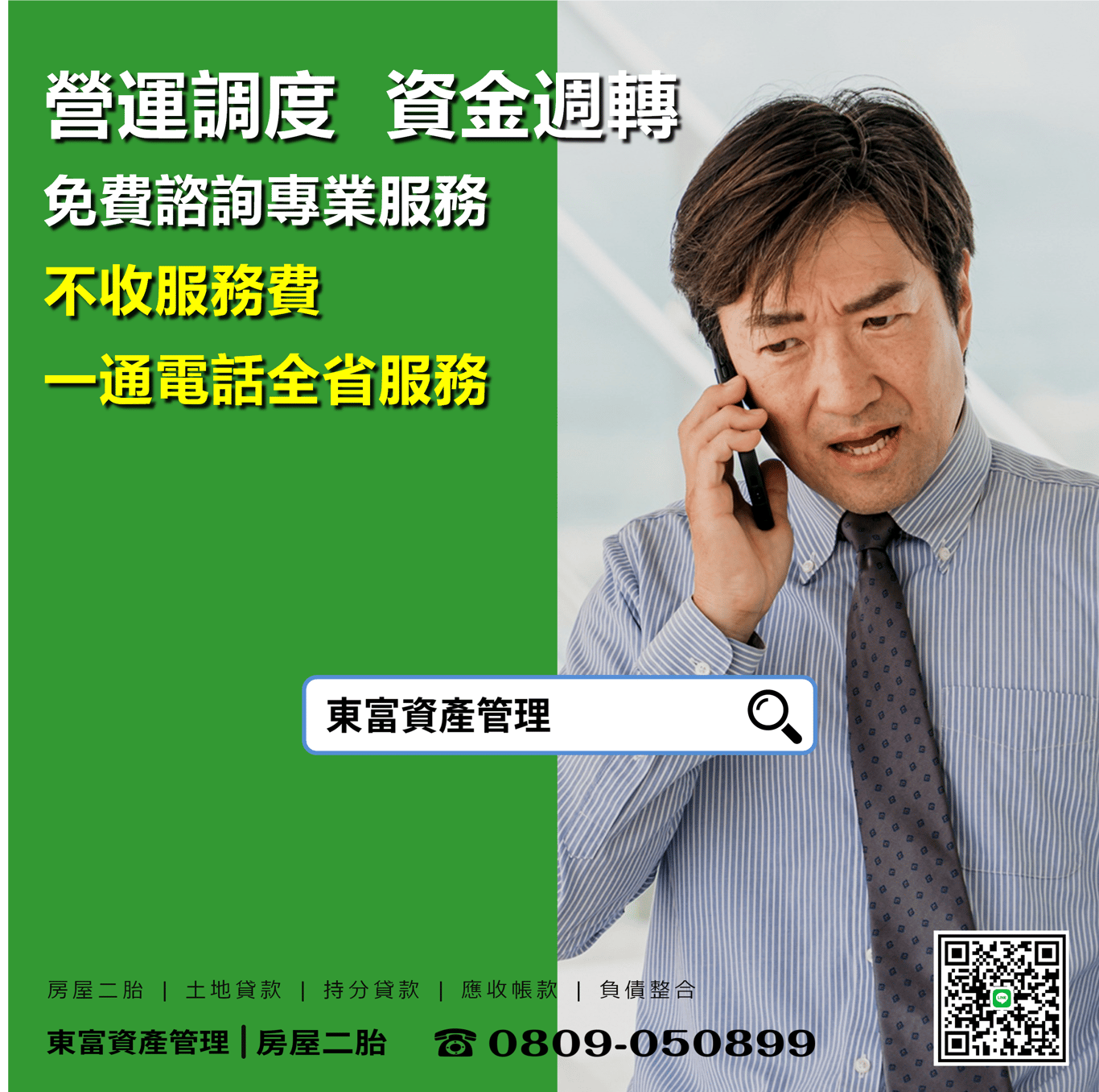 現在就與東富資產管理諮詢,為資金找到安心出口在資金環境日益緊縮的今天,拖延往往比行動更昂貴。與其獨自摸索,不如先讓專業團隊協助你釐清方向。東富資產管理,以資產專業為核心,陪你一起找到最適合的資金解決方案。