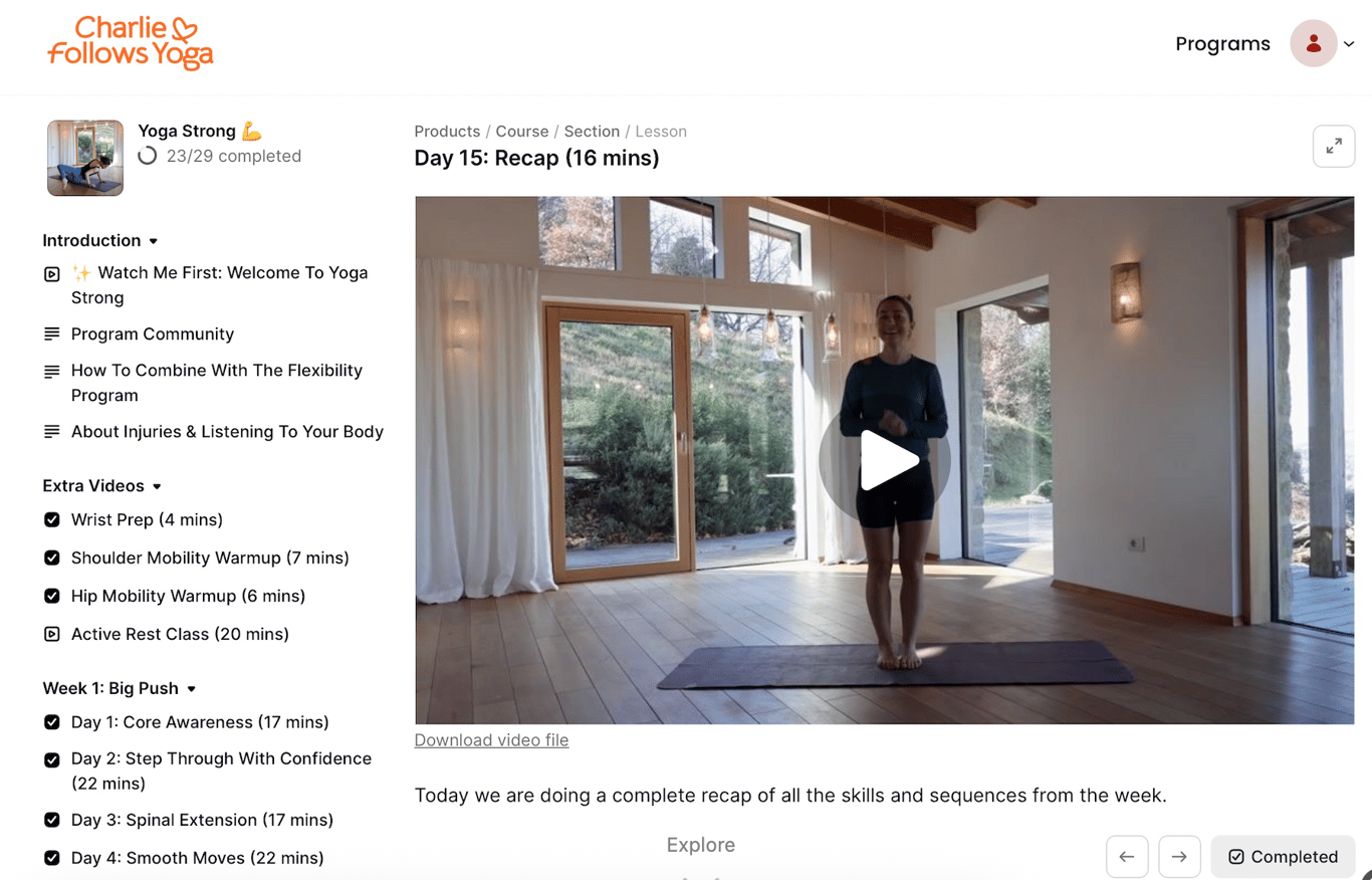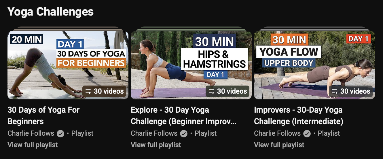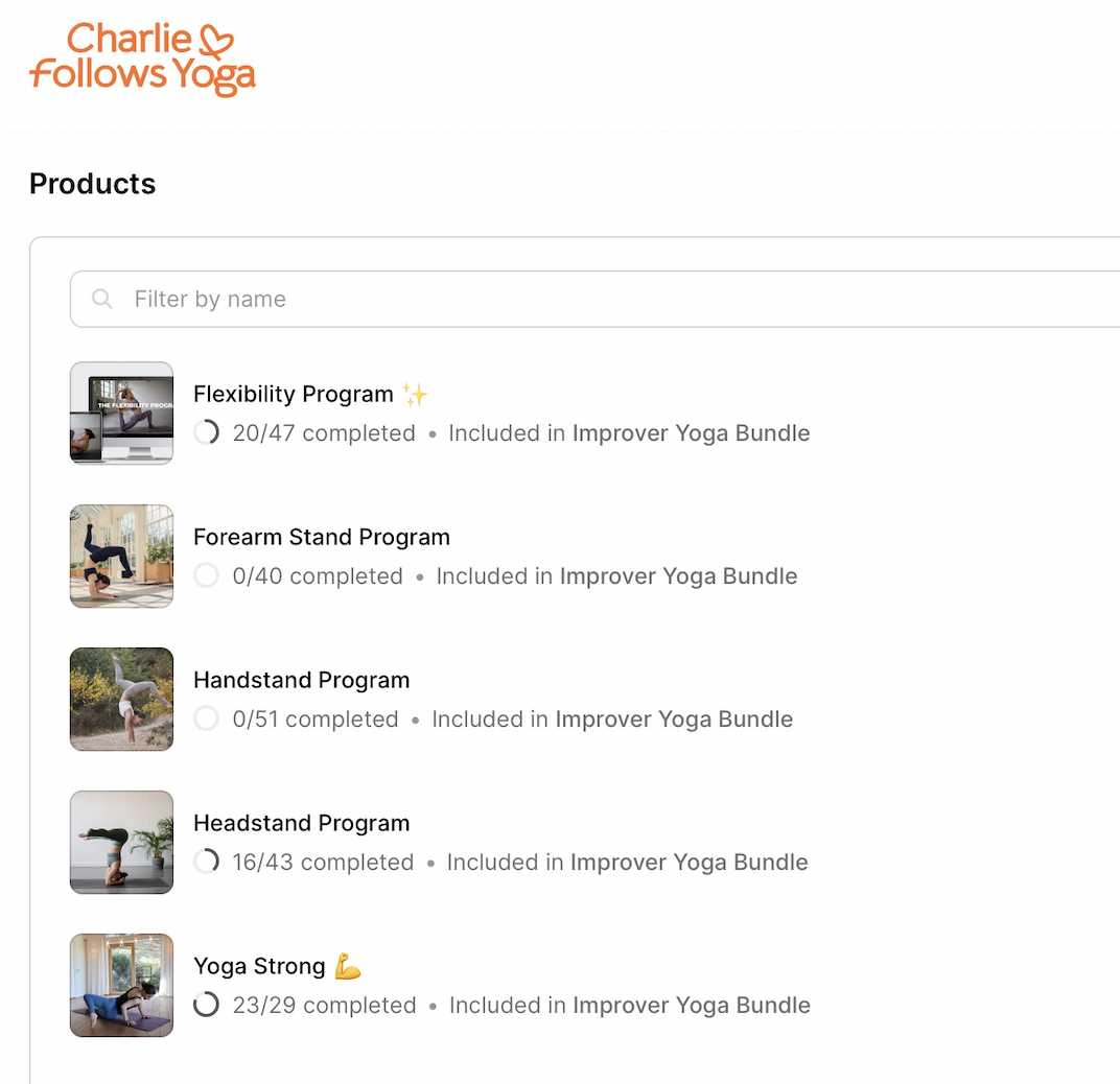 今年5月和6月也还是每天跟着YouTube视频来做,但渐渐感觉有些不够,重复练习过的视频很多,想试试新的不同的练习,同时自己也感觉像是进了停滞期,或者平台期,总之已经习惯了这个强度,练完身体没有什么变化。刚好Charlie7月份有优惠活动,她的付费课程打折(PS:刚好现在黑五打折力度更大了,如果有兴趣可以点这里,真不是托,没收钱)。纠结了好几下,因为我以前买的各种网课都没学下来,感觉钱白花了,更糟糕的是助长自我否定情绪,担心这个也会是同样的结果。
