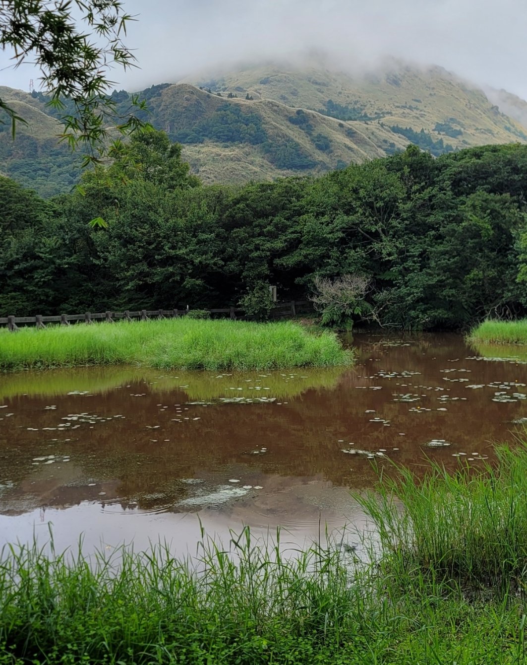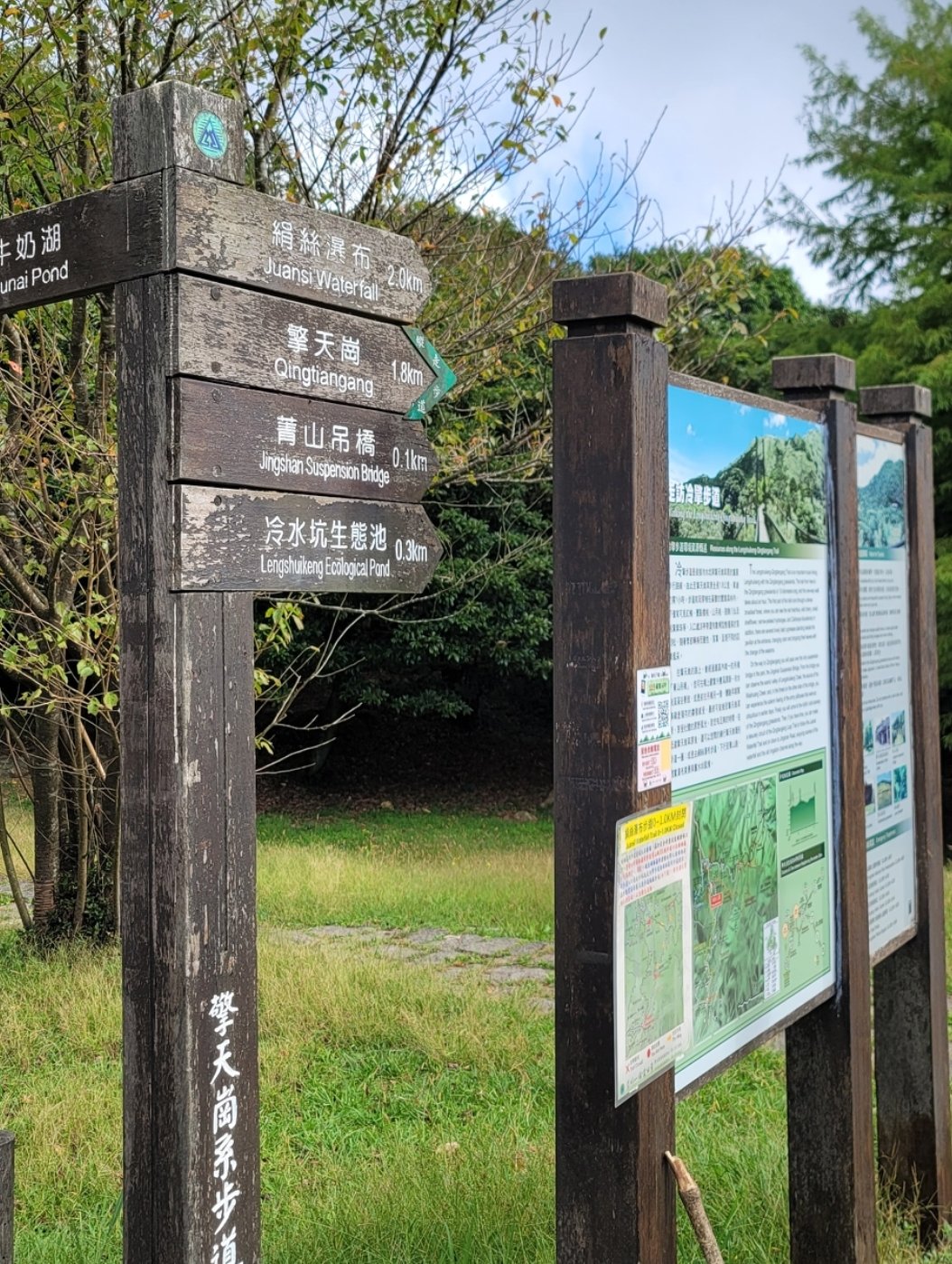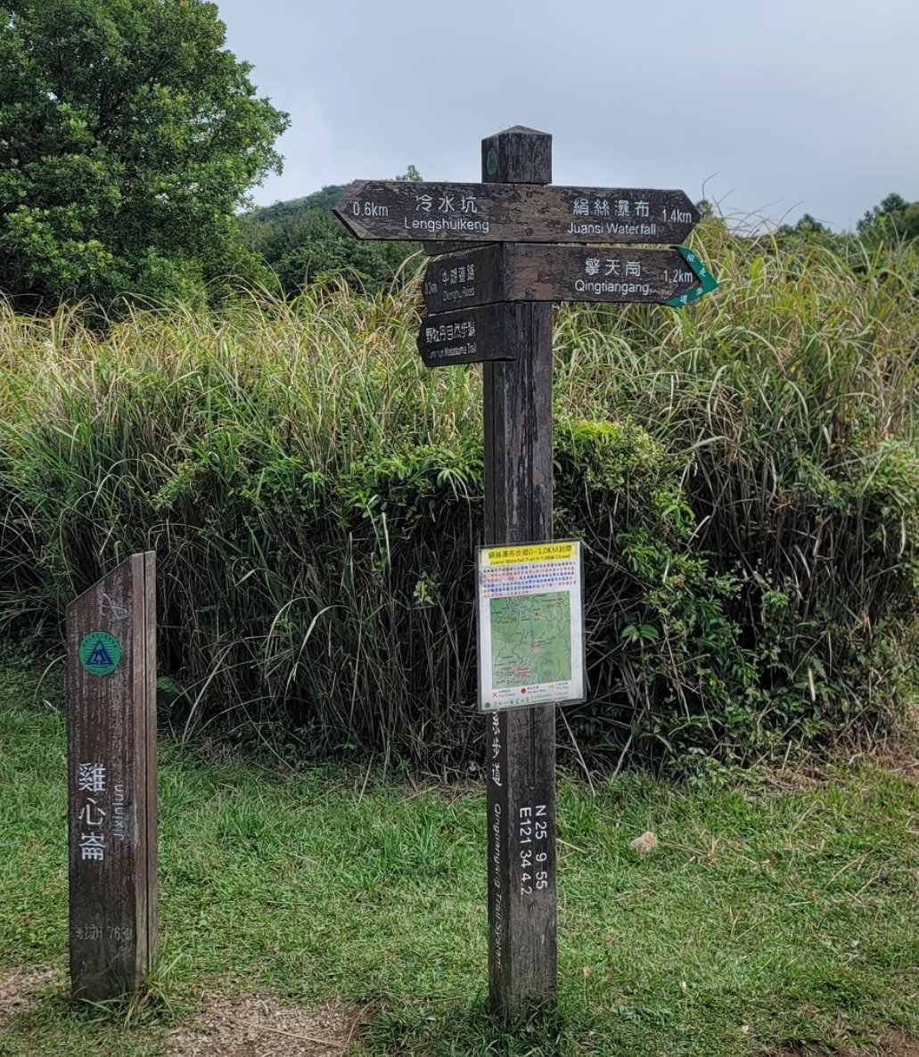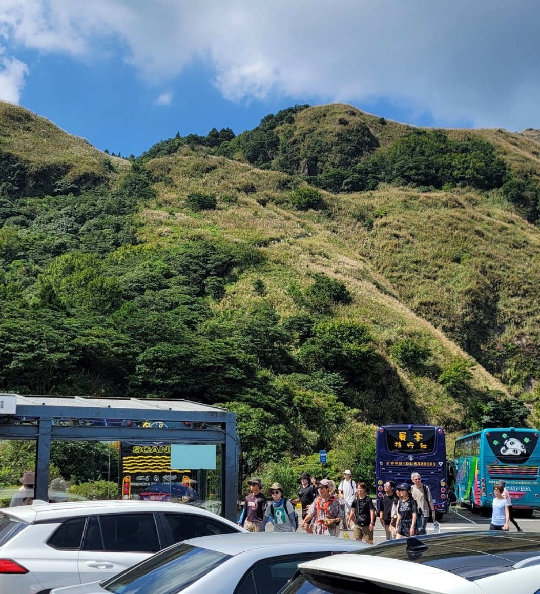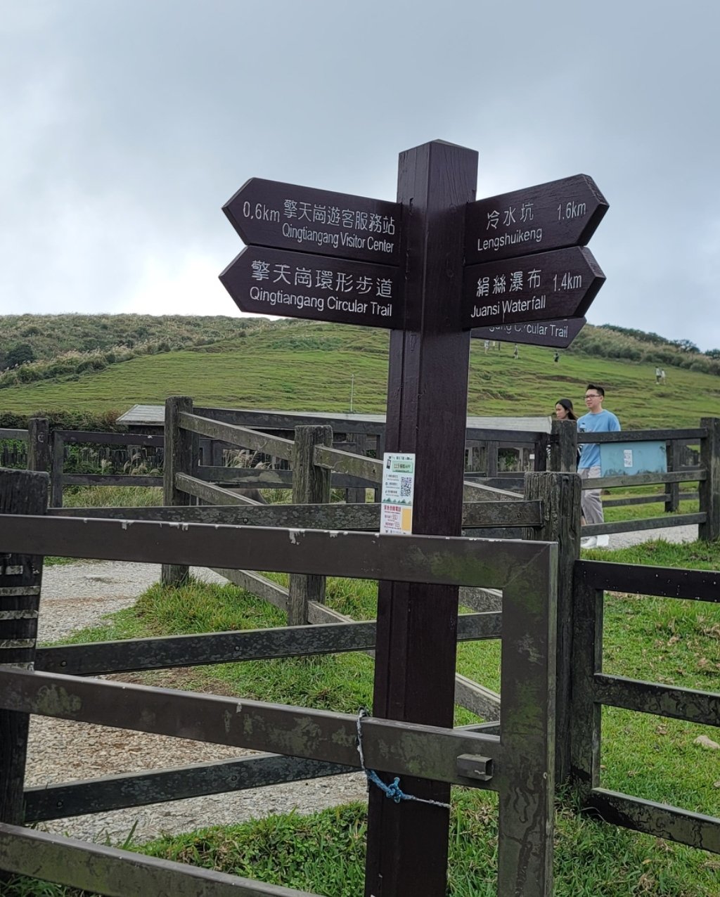 上周只走到冷水坑服務中心,並沒有繼續往上走。今天想直接到冷水坑再走冷擎步道上擎天崗。從捷運劍潭站坐小15 公車,人排成一條長龍,等了約10分鐘,公車來了,上了公車,沒有位置坐,大約30分鐘,開到田尾湖站,前面開始塞車,只剩一站就可到冷水坑,索性下車徒步,約10分鐘後抵達服務中心。