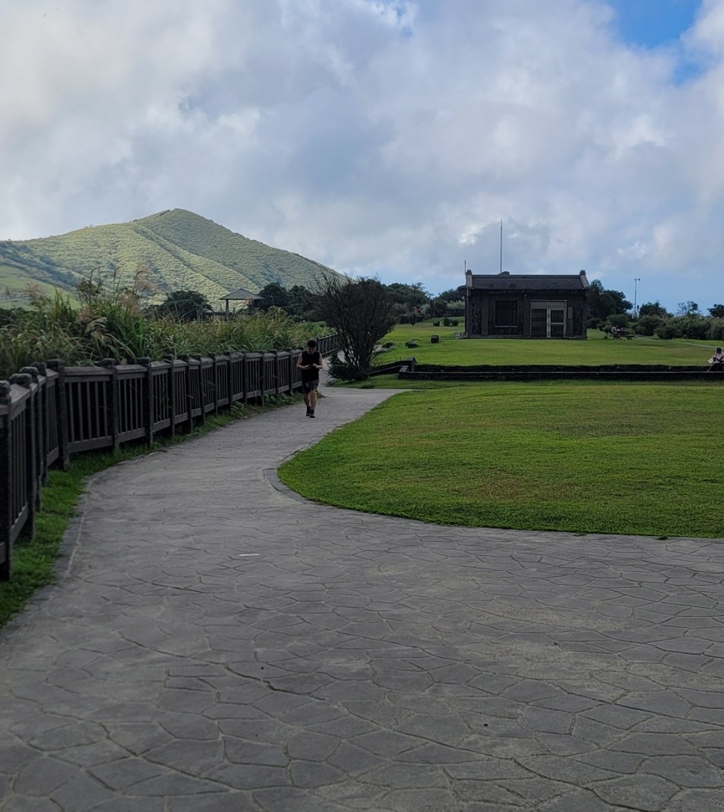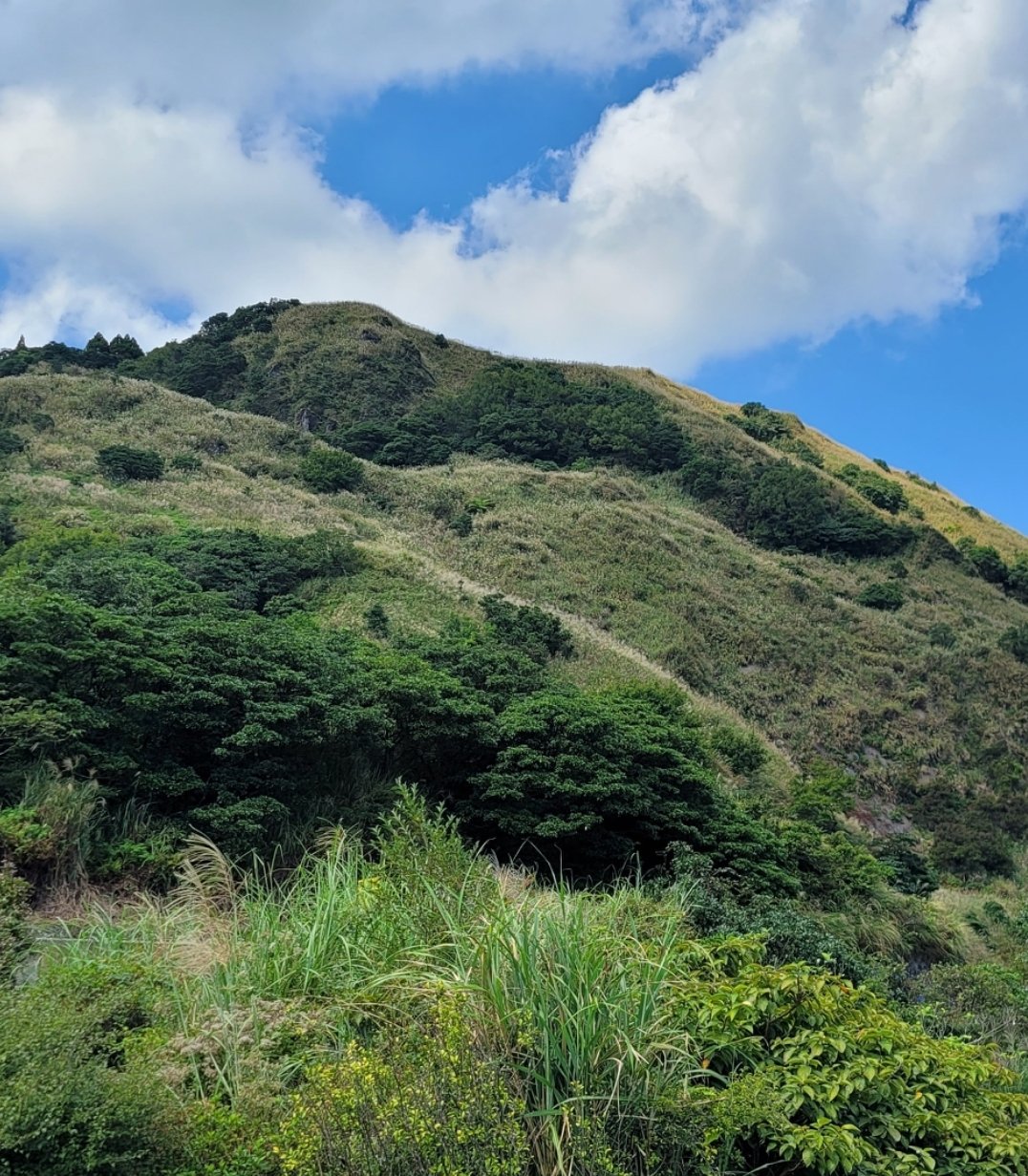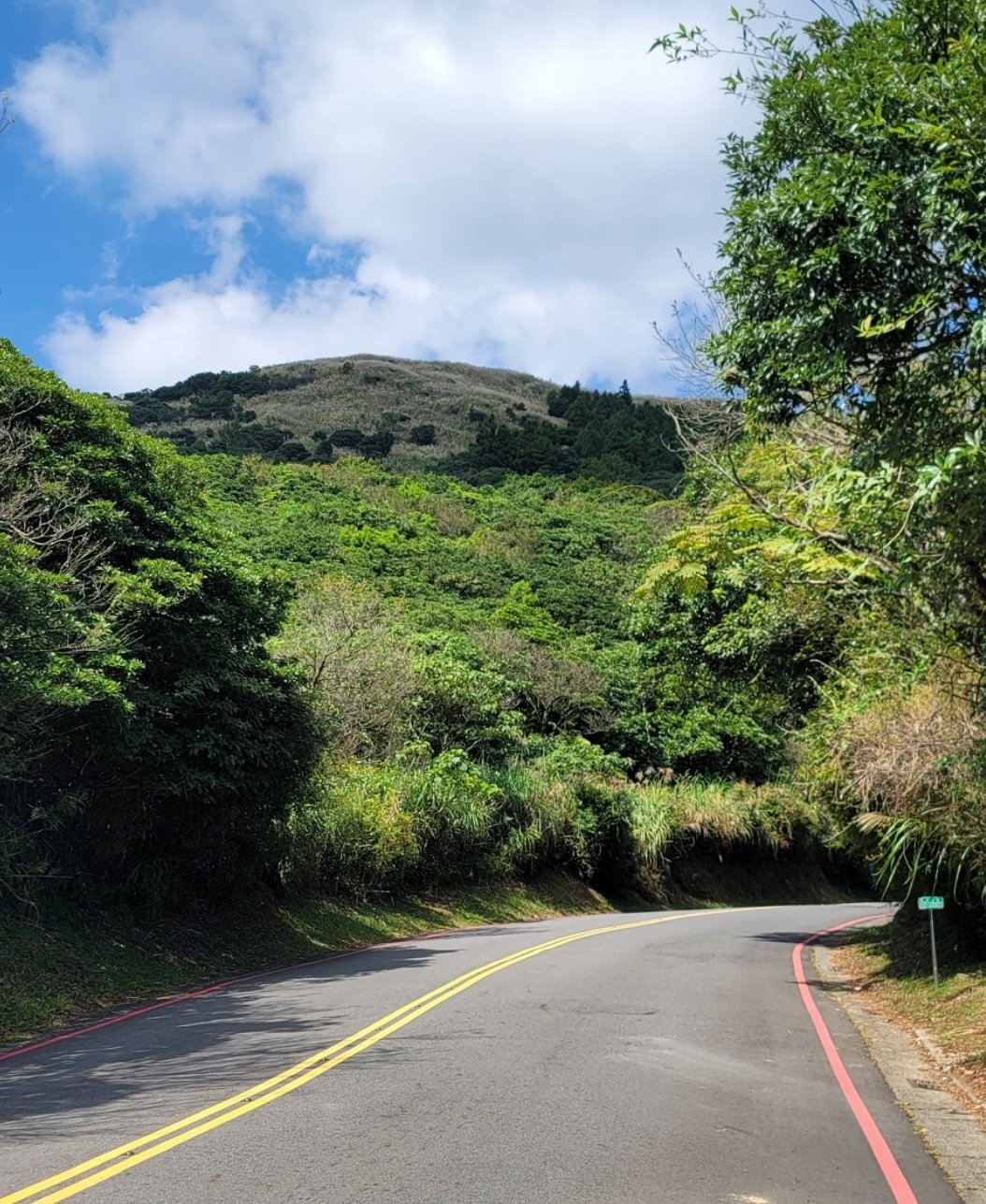 循著高中時期的路線,坐111公車到山仔后下車,先在小七買了一瓶900 cc 礦泉水,轉進菁山路。走到101巷左轉,續行,想走絹絲瀑布步道,發現已經封鎖,有點失望。只能再順着馬路往上走,旁有一人車分離步道。走進去兩旁樹木扶疏,樹葉遮蔽陽光,步道隔離馬路與車子,感覺像是另一個空間,青幽靜謐。沒有人煙的長長綠色步道,有種密徑的神祕感。一路上少見人行,只我一人徒步。馬路上除了車子以外,另有一些踏板勇士,揮汗拼搏,只為征服的快感。現在大概沒有人從山仔后走上來了。約莫一小時走到冷水坑遊客服務中心,略做休息,從冷水坑遊客中心,眺望七星山,山上芒草隨風搖曳,陽光灑照在七星山,層層疊疊的綠,秋天的褐,銀白色的芒草,射出金黃色陽光,白雲與藍藍的天。