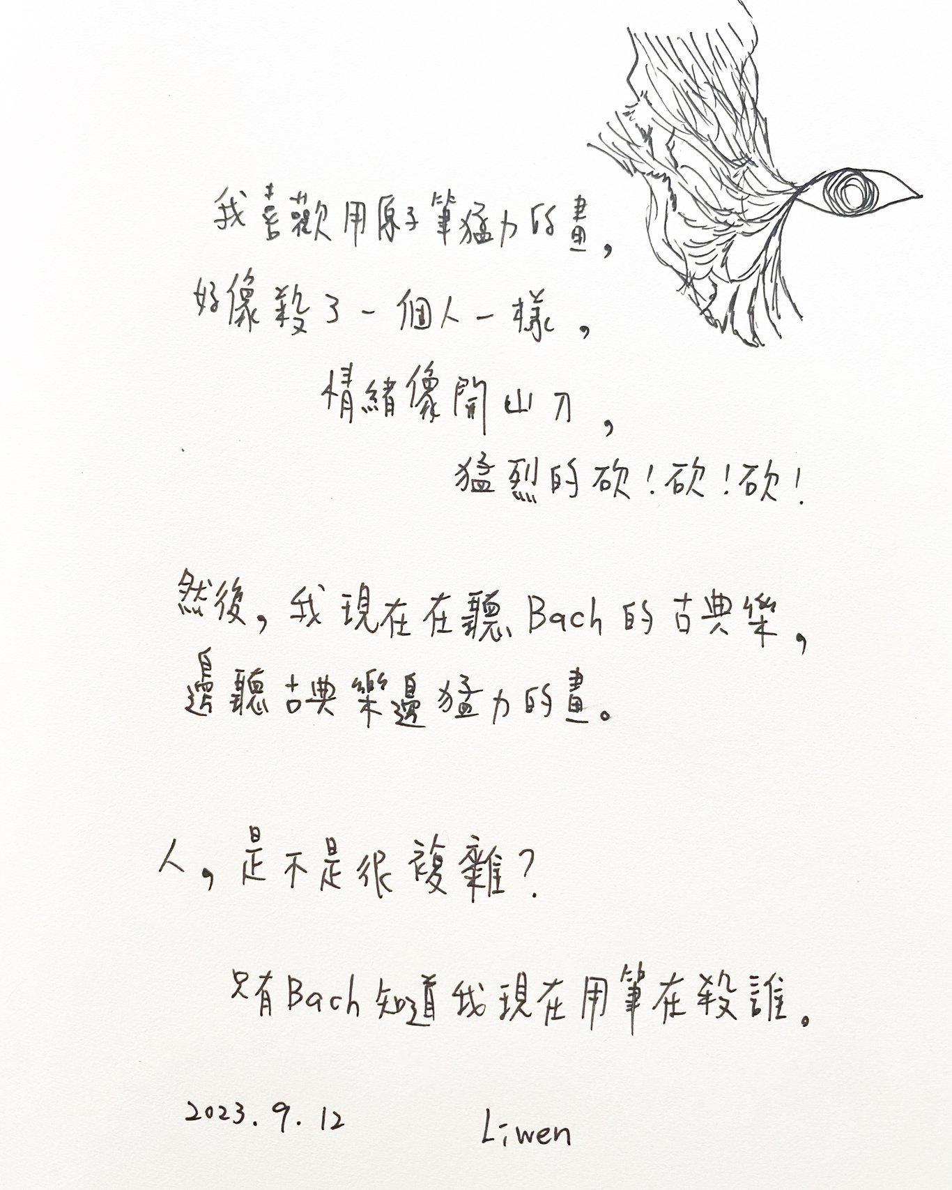 文字就是闡述的一個過程,對我來說更是自我揭露的過程,而文學是一種藝術形式,很多人會因為一個作者的用字遣詞來指責他們的作品不文學,但我從來不認為文學的局限如此狹隘。