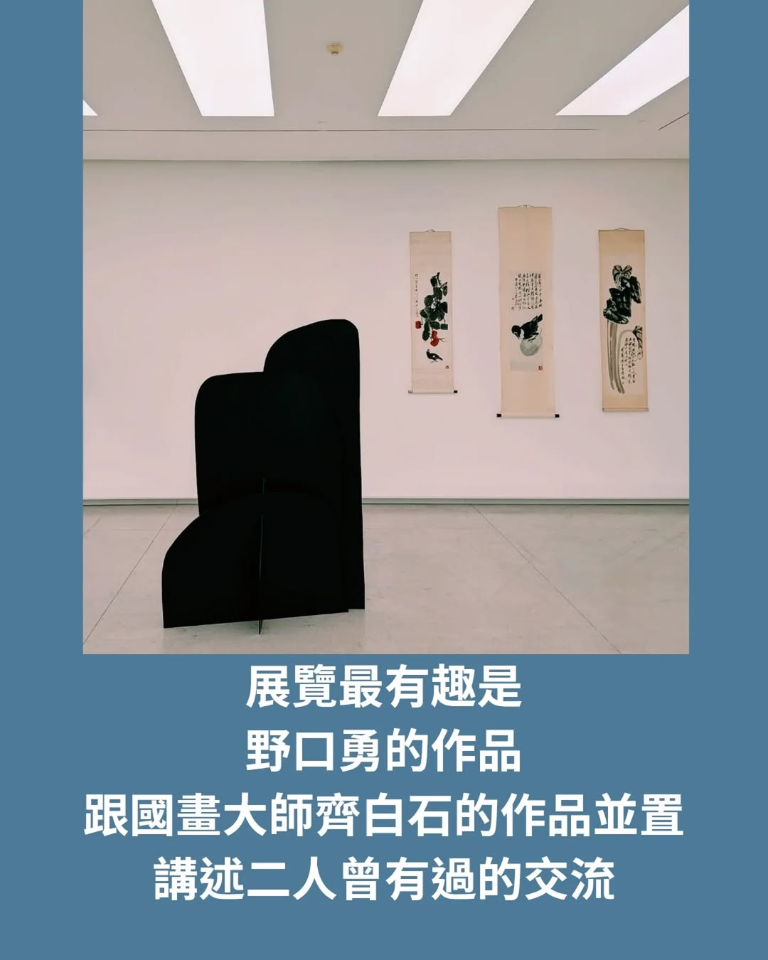原來野口勇在1930年代初,曾在北京受齊白石啟發,曾探索水墨,而那時的探索,也影響了後來他的公共雕塑創作。這展覽也因此同時展出了一些齊白石的水墨卷軸,將二人的作品並置。展覽中可同時看到野口勇不同時期和形式的創作,對他的作品有興趣的朋友,不要錯過。