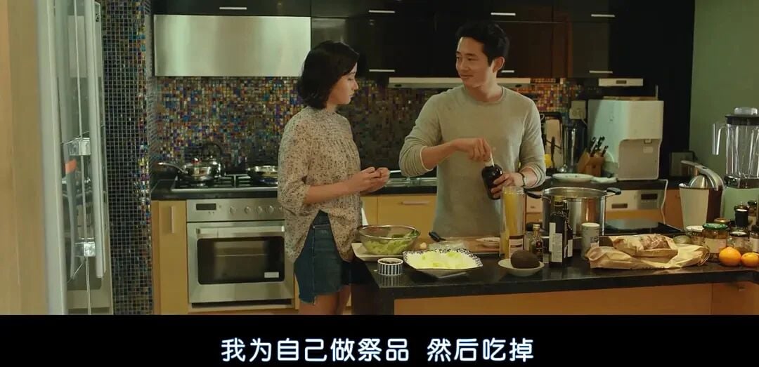 所以存在主義被經常認為是資本主義走向危機與滅亡的產物,表現了人們盲目自信導致沒有安全感和焦慮的心理,存在主義主要體現在荒謬和虛無之間,海美作為一個底層的代表可以肆意的被本所操控無視,而本也逐漸喪失人類的情感而走向麻木。依靠臆想來滿足內心對於物質的要求是底層青年的追去,就像海美的“橘子”,人的存在和物的虛無也就在此,對於海美和宗秀來說,存在就是他們的人生意義,當她消失時,她也就成了虛無。