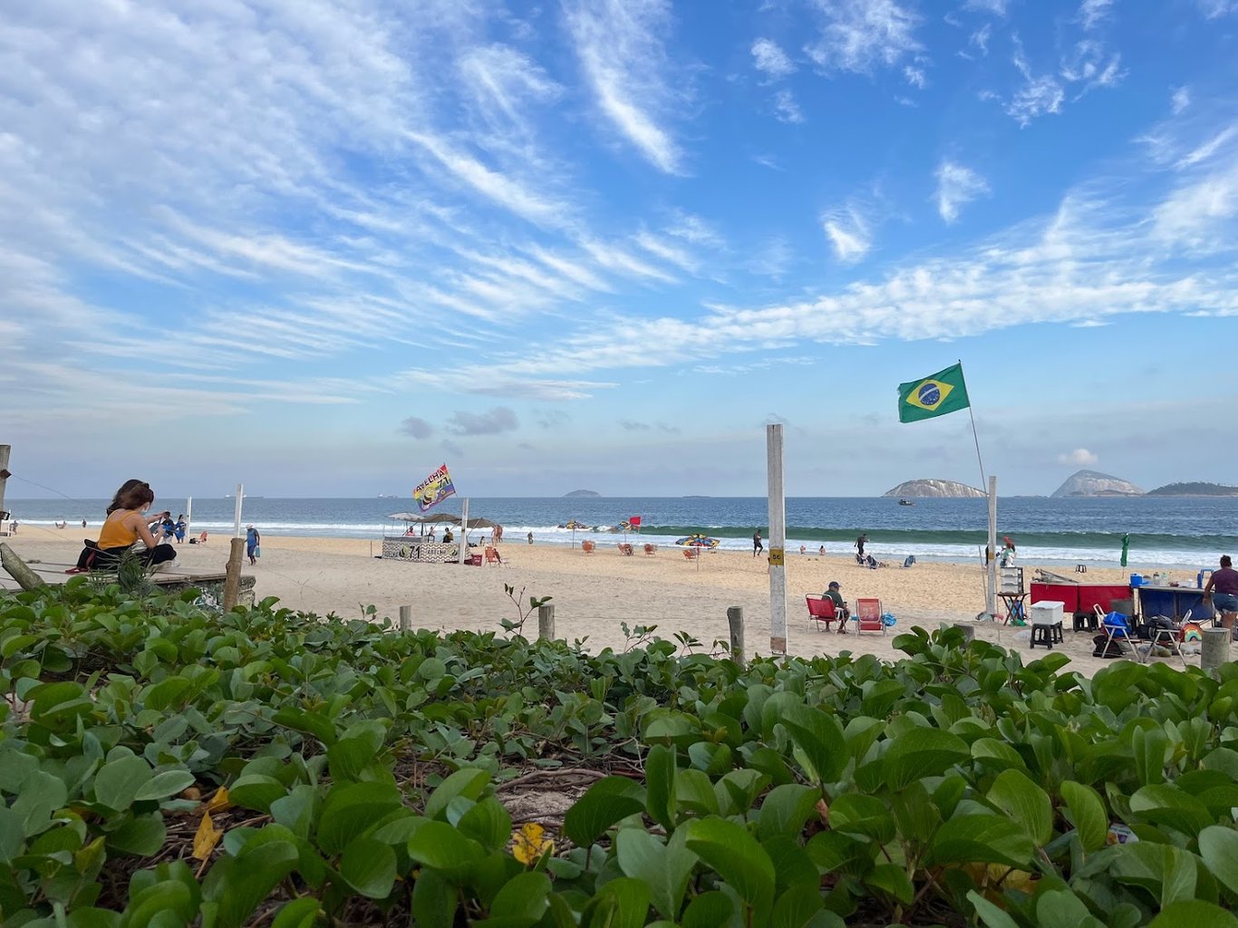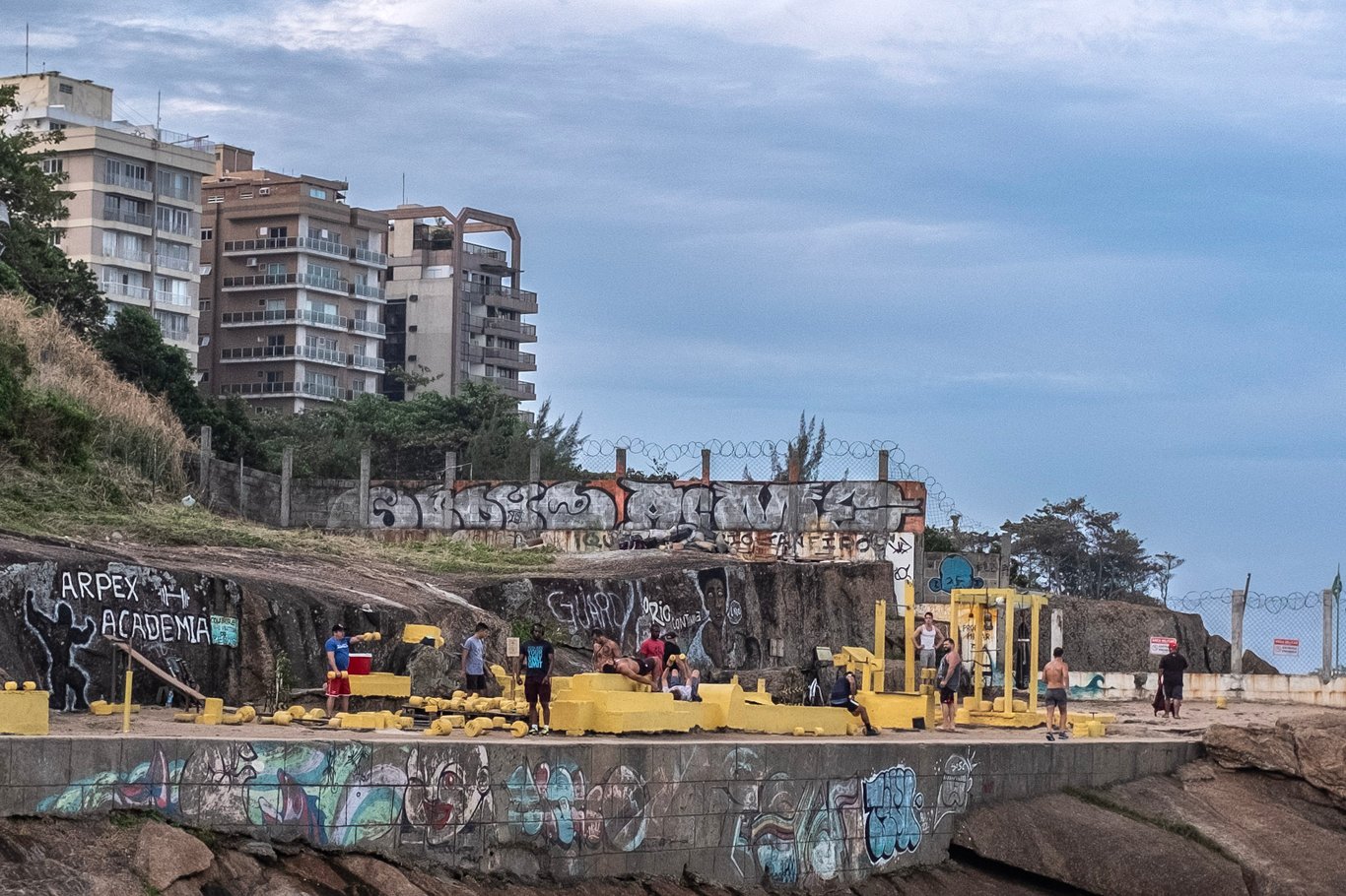 天色垂暮,我依然執意向前,為了登上一塊很想攀登的礁石。 途經湯姆·若賓銅像再走了一小段路才如願。 這裏是「伊帕內瑪女孩」(Garota de Ipanema)公園的一部分。 與我年紀一般大的經典電影《街童》(Pixote, 1980)中,那跨性別少年莉莉卡唱歌的地方我相信就是這塊岩石了。 他自感前路黯黯,不是入獄就是倒斃街頭,說:我這麼一個娘娘腔可以指望生活帶來什麼? 接著便輕輕唱起卡耶塔諾寫的那首歌《奇異的力量》(Força estranha):