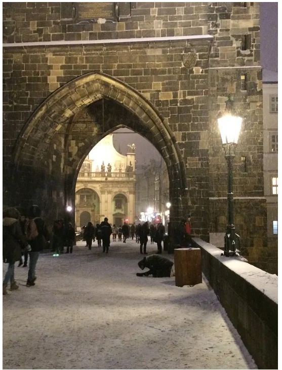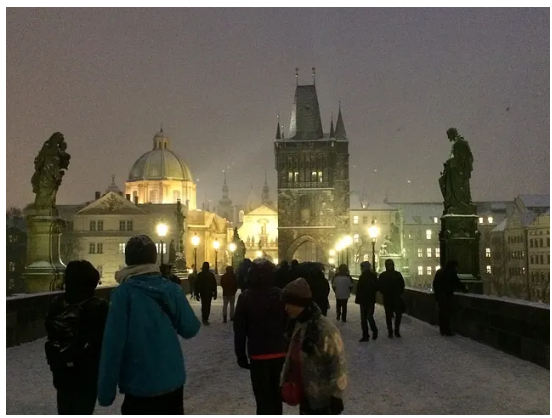 從皇宮走回到舊城區,我冷到打哆嗦,但看著橋那端的燈火,