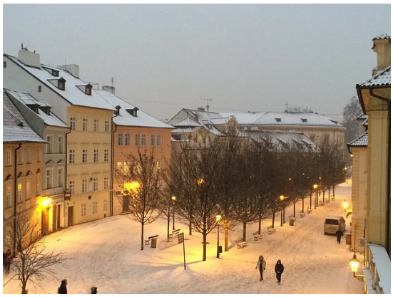 從 Újezd 搭著纜車一路隨著上升的纜車到 Petrin,可以想見積雪的樣貌。