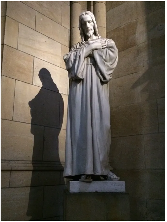 聳立卻帶著嚴肅面孔的立像與光影交織出一幅很奇妙的景象;