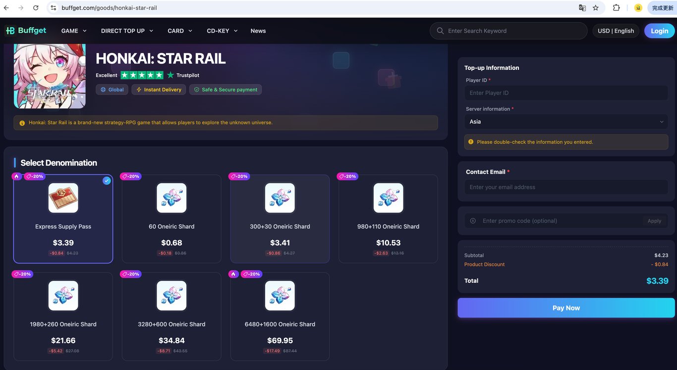 Buffget Discounts: Purchase Monochrome at 20% off via BuffGet’s HSR Shopfor artifact farming.